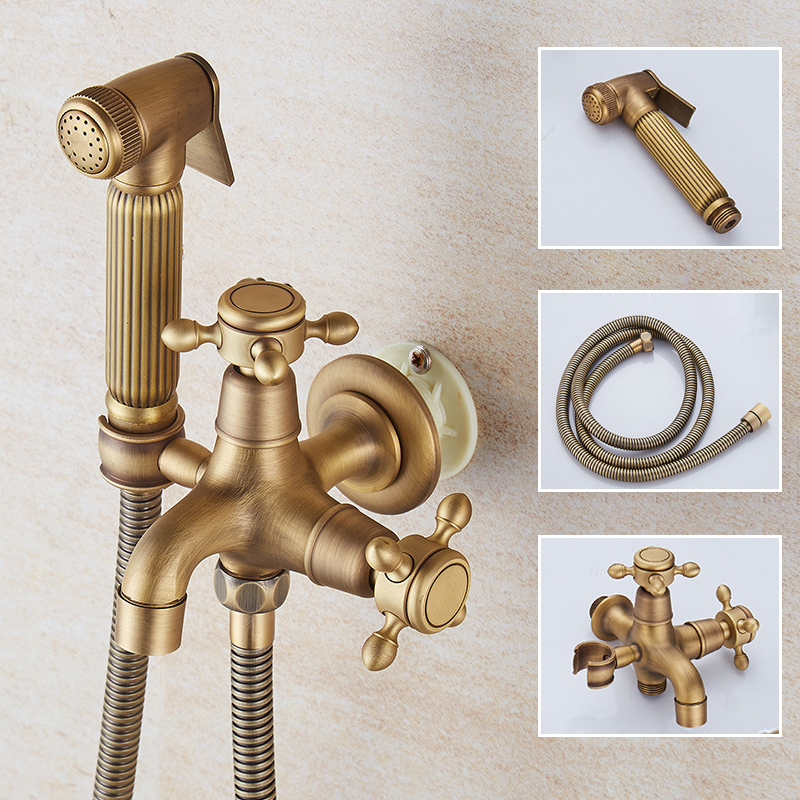 Full copper retro balcony mop pool tap Single cold spray gun tap integrated into the wall tap