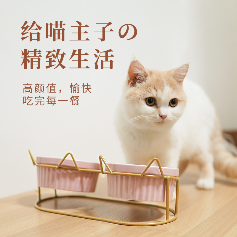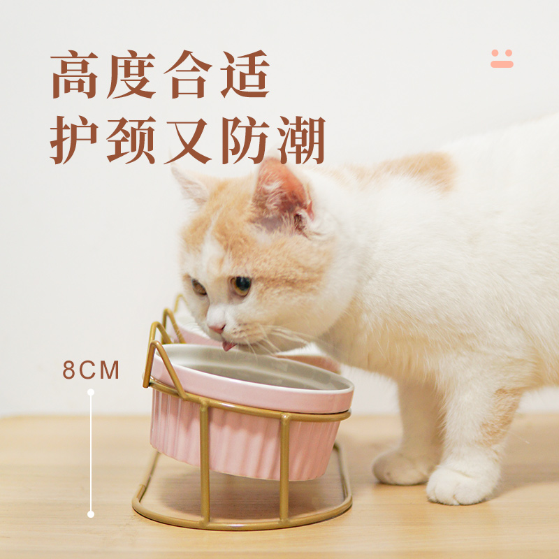 Cat Bowl Ceramic Kitty Cat Food Double Bowl High Foot Food Basin Spot-proof Automatic Drinking Water Grain Bowl protection Cervical Spine Supplies