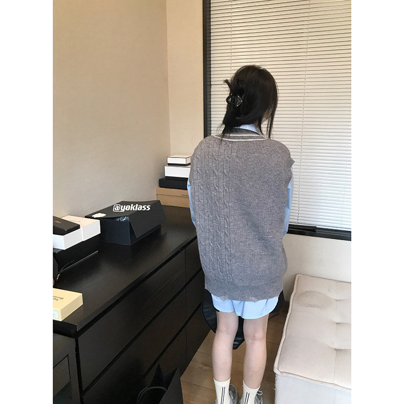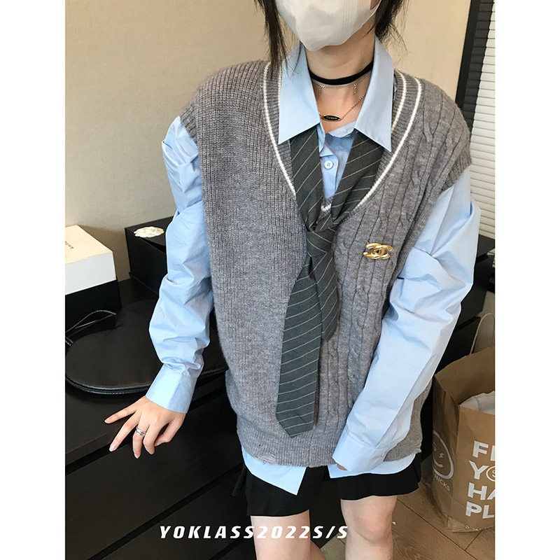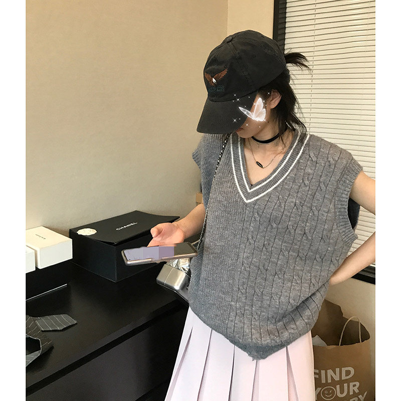 Wang Shaoshe's shop grey waistcoat spring and summer new design Feeling Small Crowdknit Fashion Outlap Wear Vest Blouse