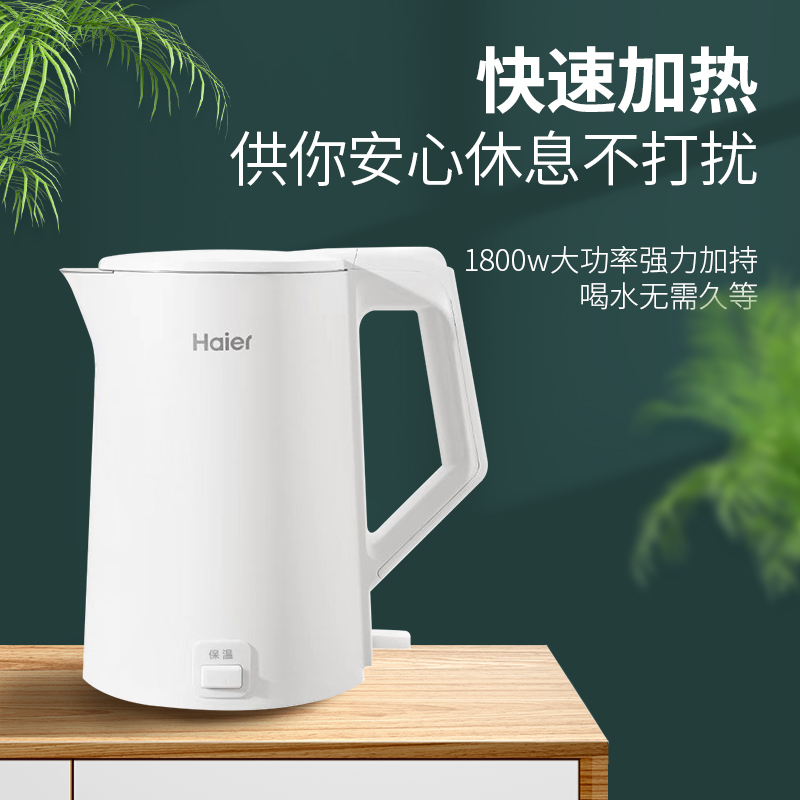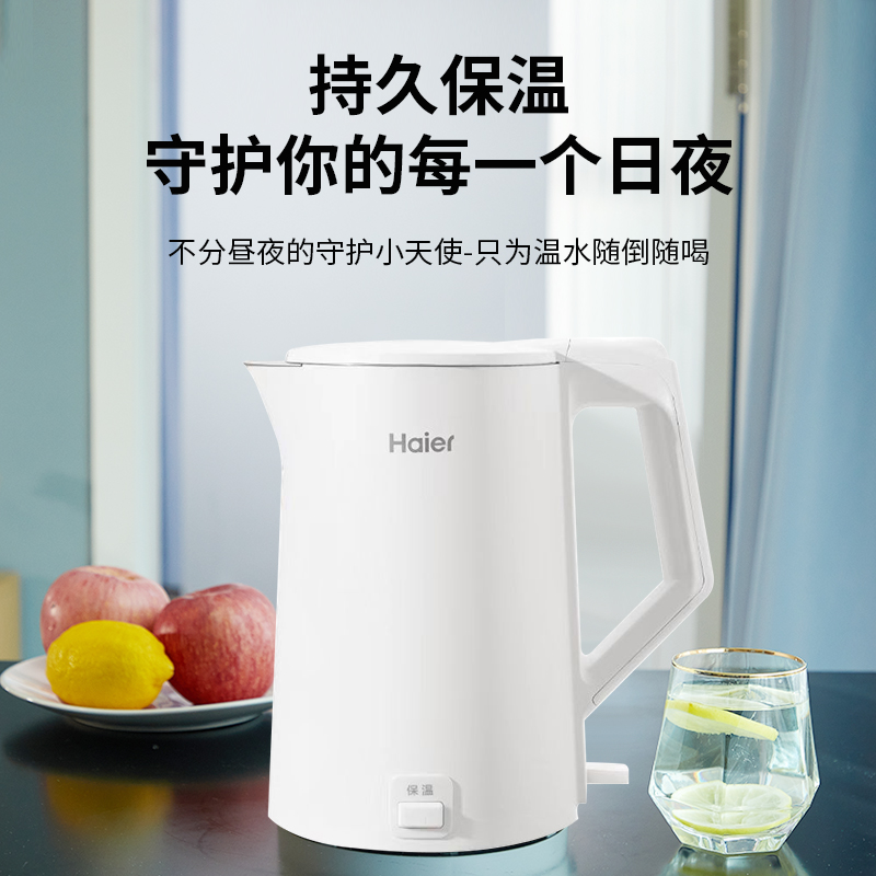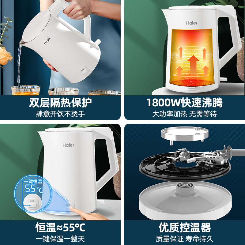 Haier thermostatic electric kettle 304 stainless steel kettle insulation integrated household large-capacity automatic power-off white