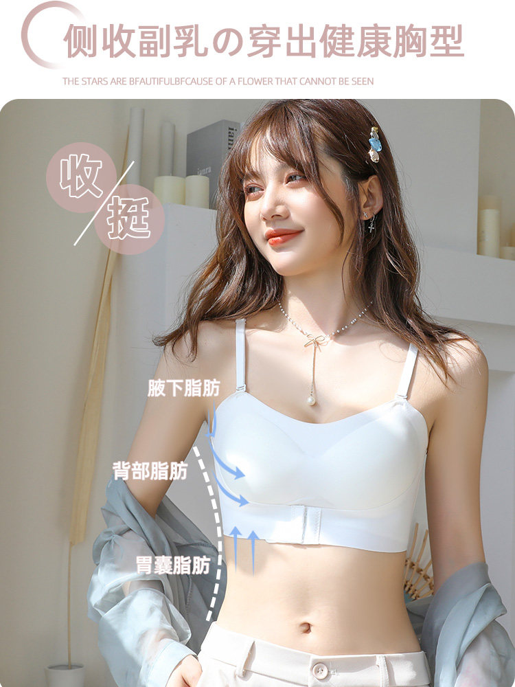 Beautiful back-wired underwear woman summer small breast gathering anti-slip white stealth bra wedding dress special shoulder-free bra bra