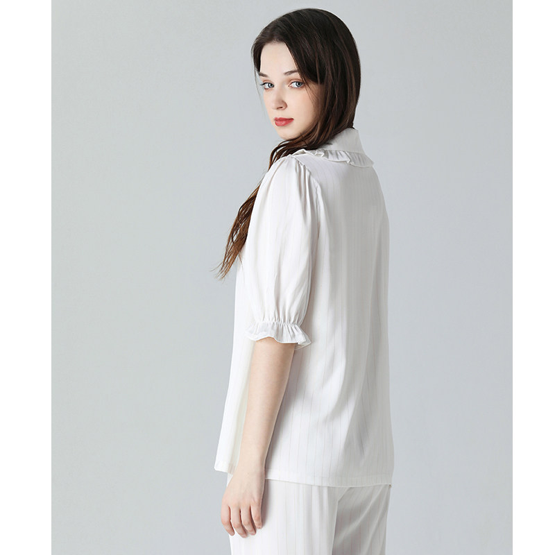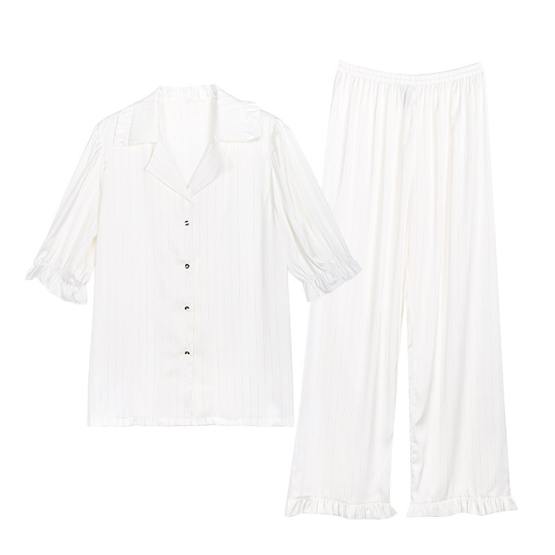 IIZZINI 2022 pajamas woman summer ice silk short sleeve rice white striped sweet and long pants home suit suit
