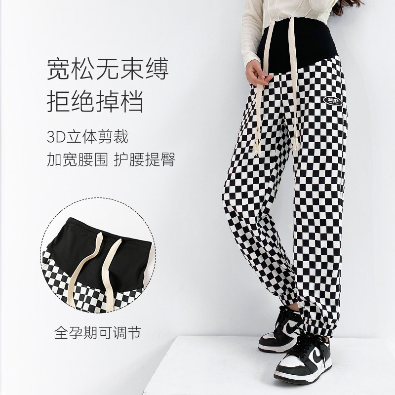 Maternity pants, women's summer large size loose sports pants, belly support maternity pants, outer wear spring and autumn thin section casual thick cotton pants