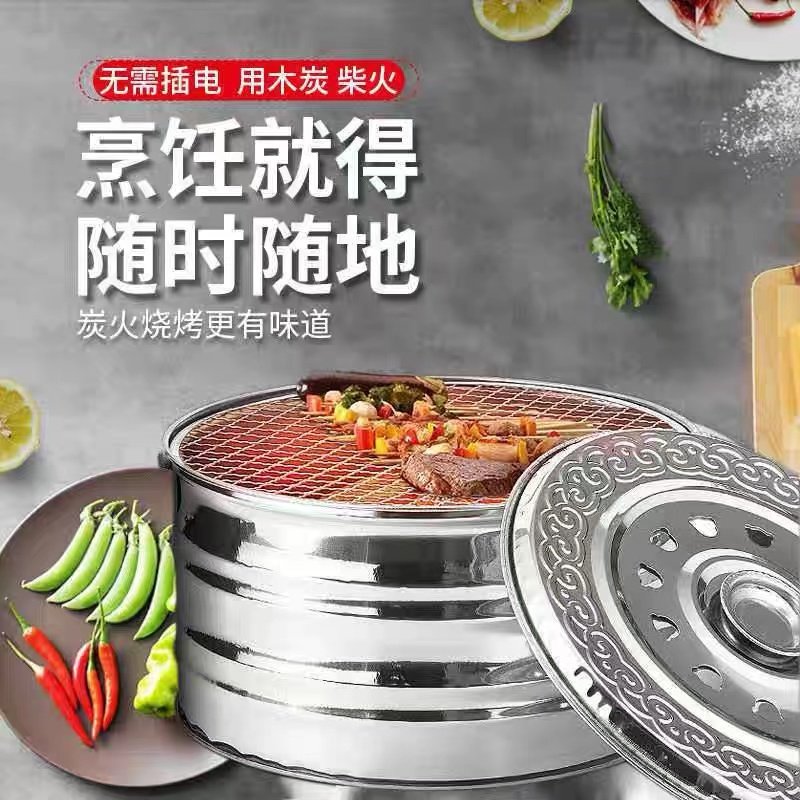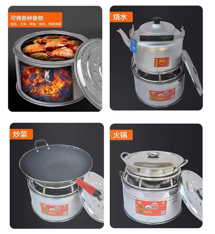 Stainless steel portable stove heating charcoal oven outdoor small barbecue old wild cooking portable sautlet moving over fire