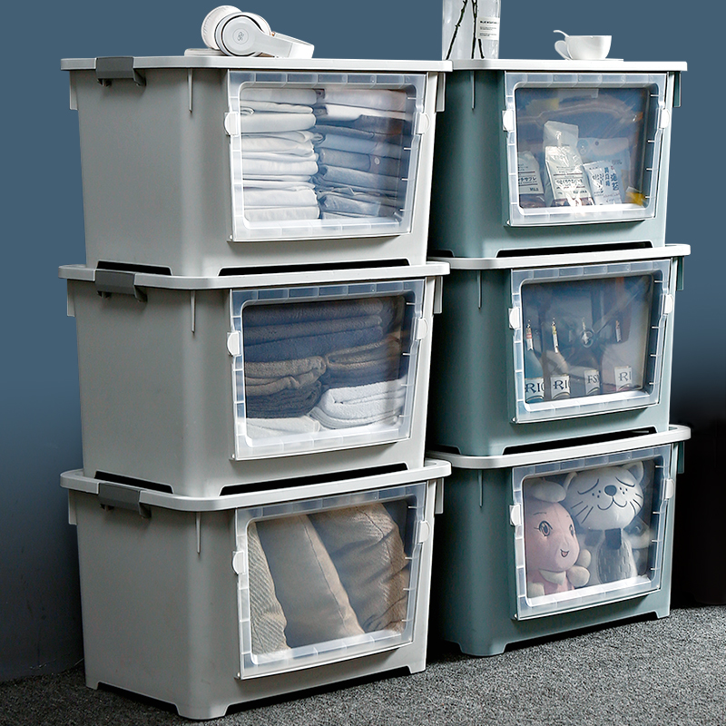 Sky Squirrel Front Open Toy Containing Box Home Plastic Flip Flops Storage Containing Box Large Clothes Transparent Finishing Box
