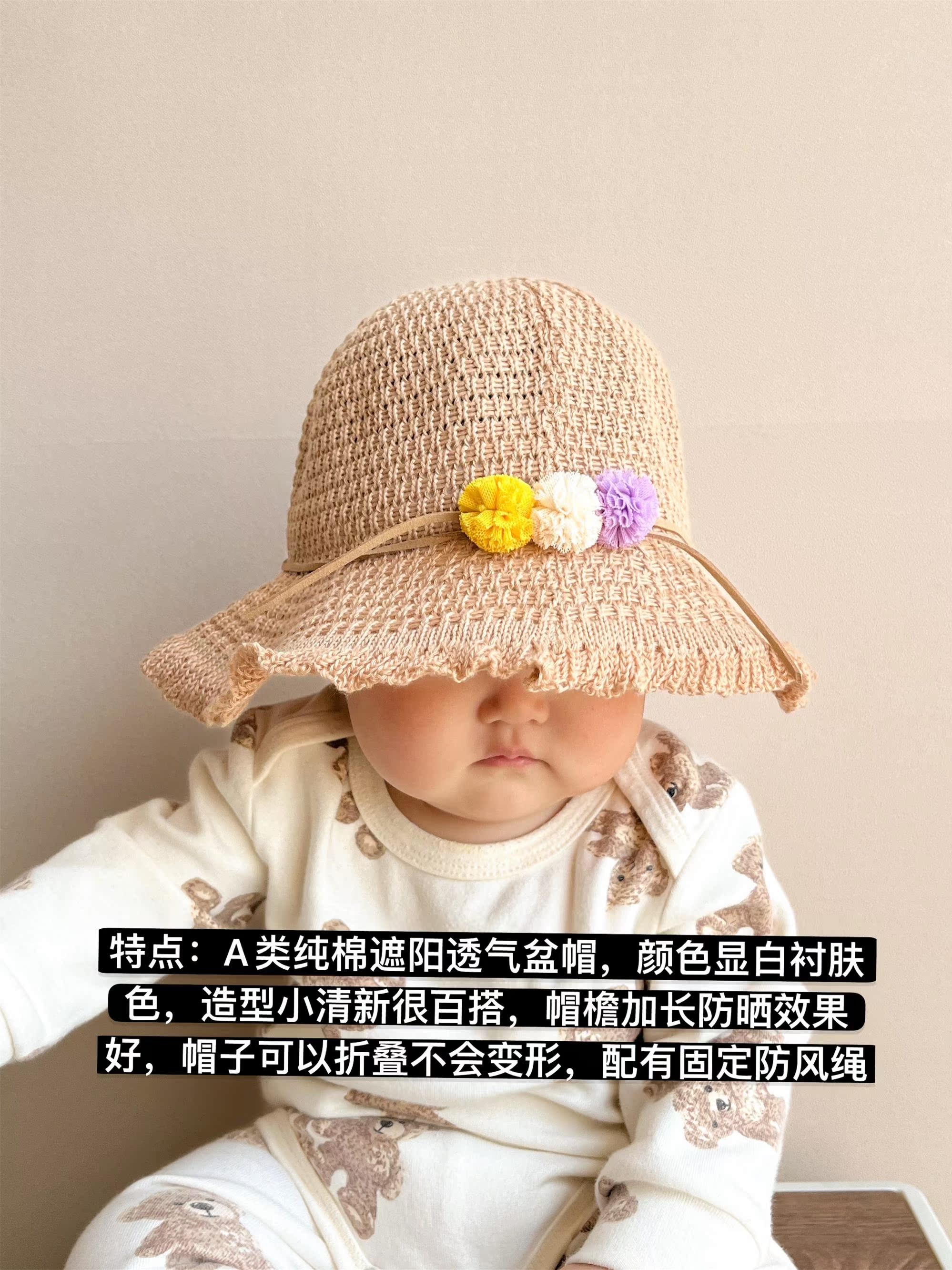 Baby hat summer mesh hat breathable baby sun hat thin big eaves children's basin hat female children fisherman hat straw hat