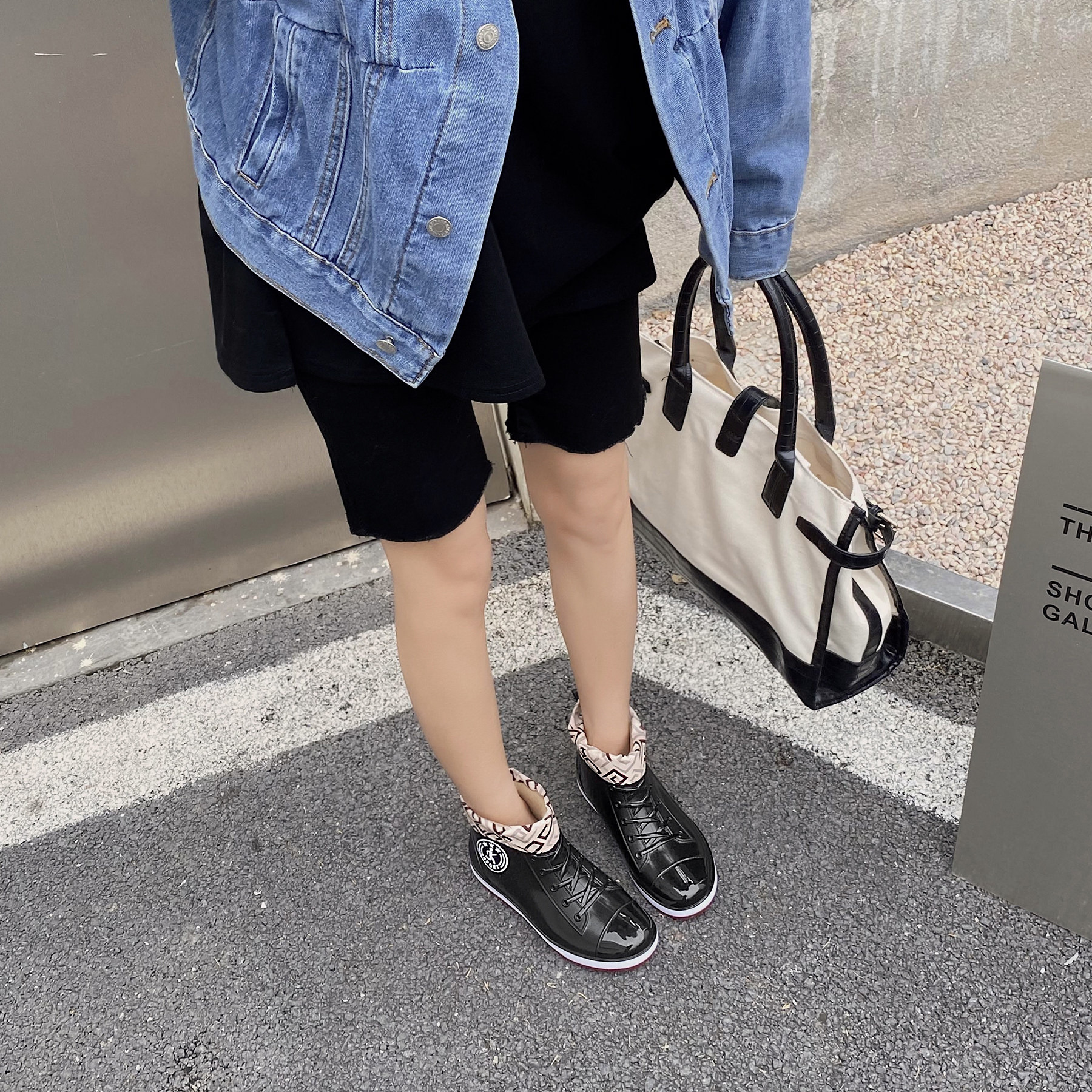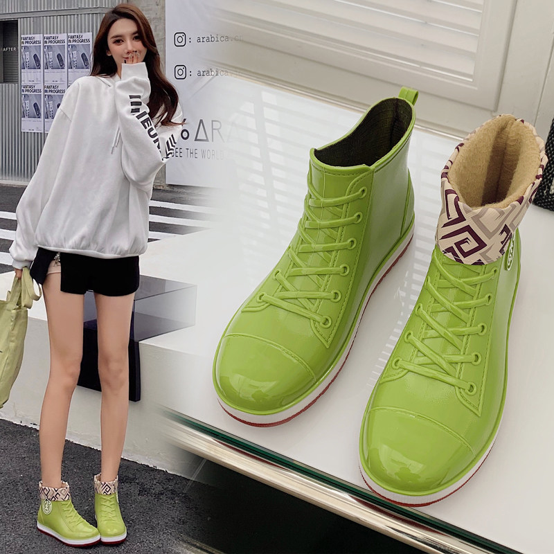 Japanese four seasons fashion rain boots women's short tube warm rain boots water shoes low top water boots non-slip kitchen shoes rubber shoes plus velvet