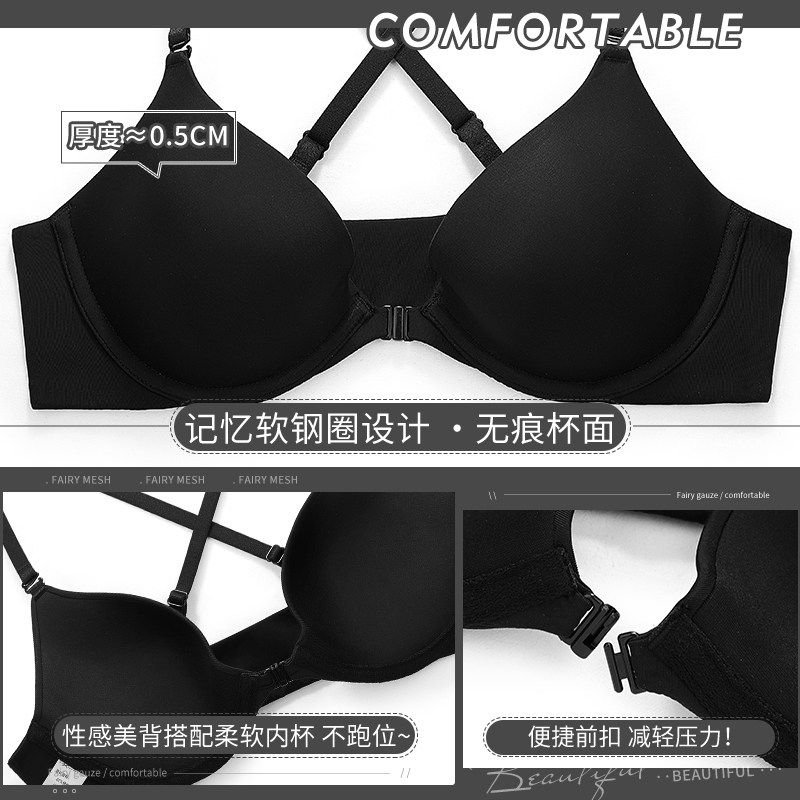 Summer Thin front buttoned lingerie woman Sexy apologele with no marks and no marks, big breasted bra with small cross and beautiful back