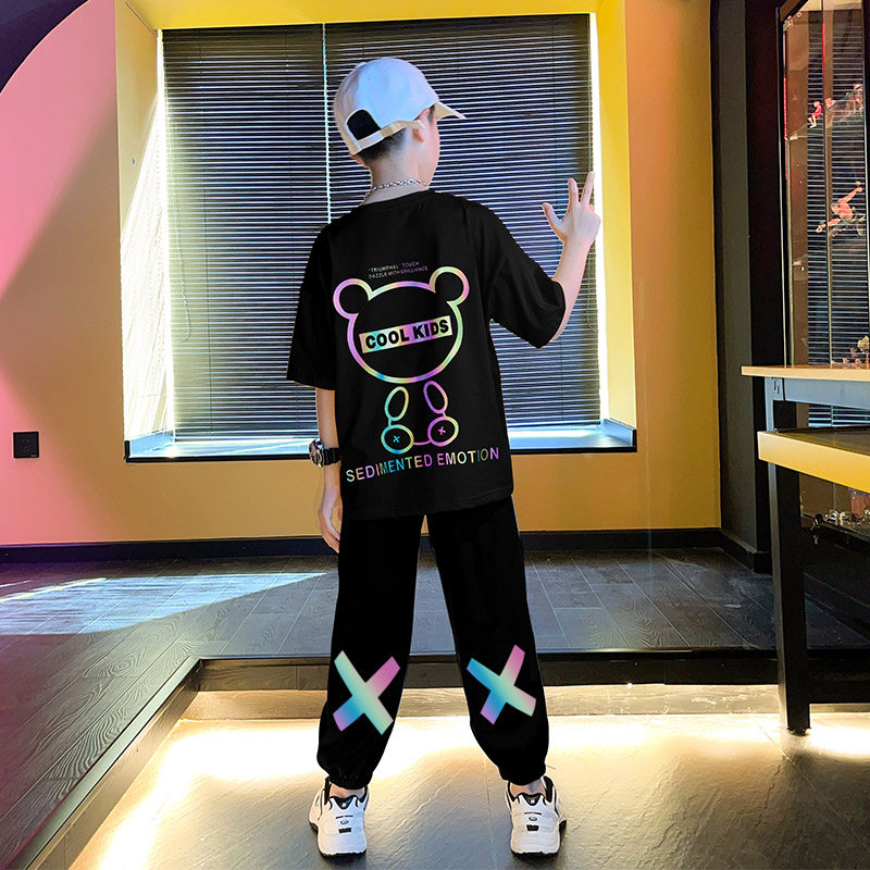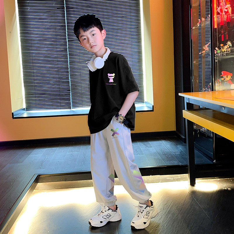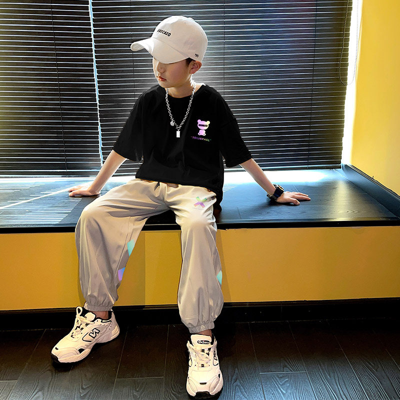 Boy's summer clothing suit children 2022 new summer sports short sleeves thin CUHK children's net red fried street handsome qi boomer