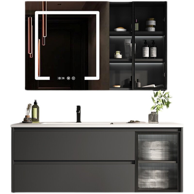 Nordic Modern Minimalist Integrated Smart Mirror Cabinet Solid Wood Ceramic Washbasin Small Household Type Wash Bench Bath Cabinet Composition