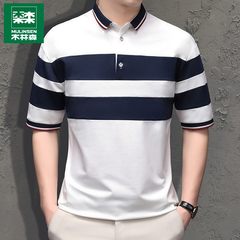 Wood Linson Turtleneck Polo Shirt Male Summer Slim loose Business casual high-end short sleeve T-shirt inner lap top