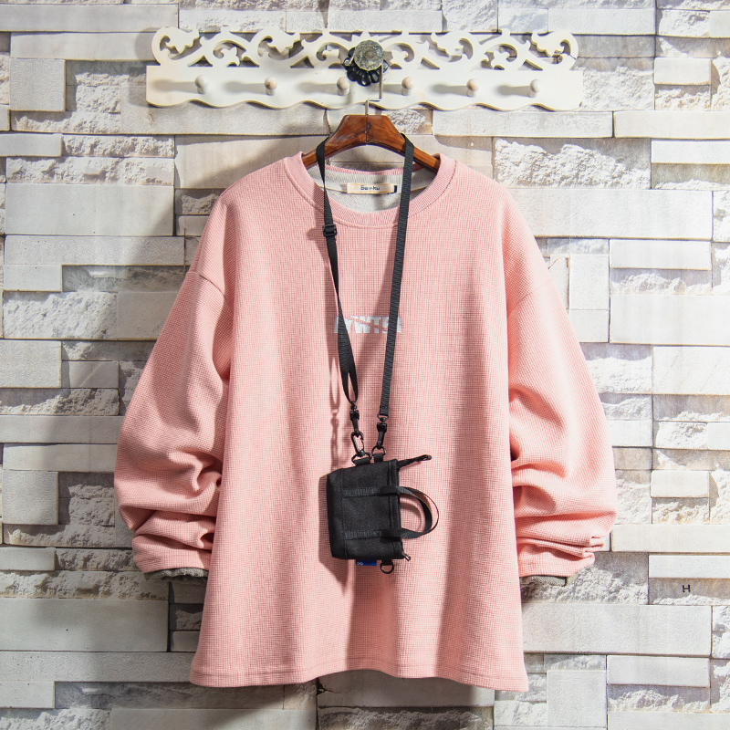 Flammable youth 2022 Huffeuge pure color round collar thick cotton T male port craze relaxed spring new ins blouses