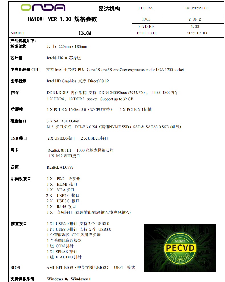 ONDAH610M desktop computer motherboard LGA1700 memory DDR5 DDR4 with set display 12 generation cpu