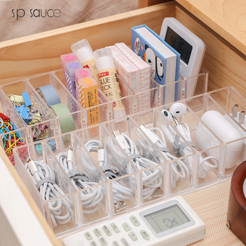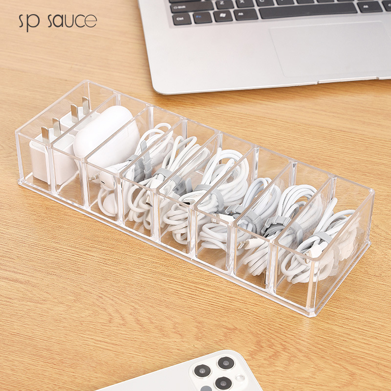 Desktop data line accommodating theorizer mobile phone charger charging wire finishing sub-grid winder power cord containing box