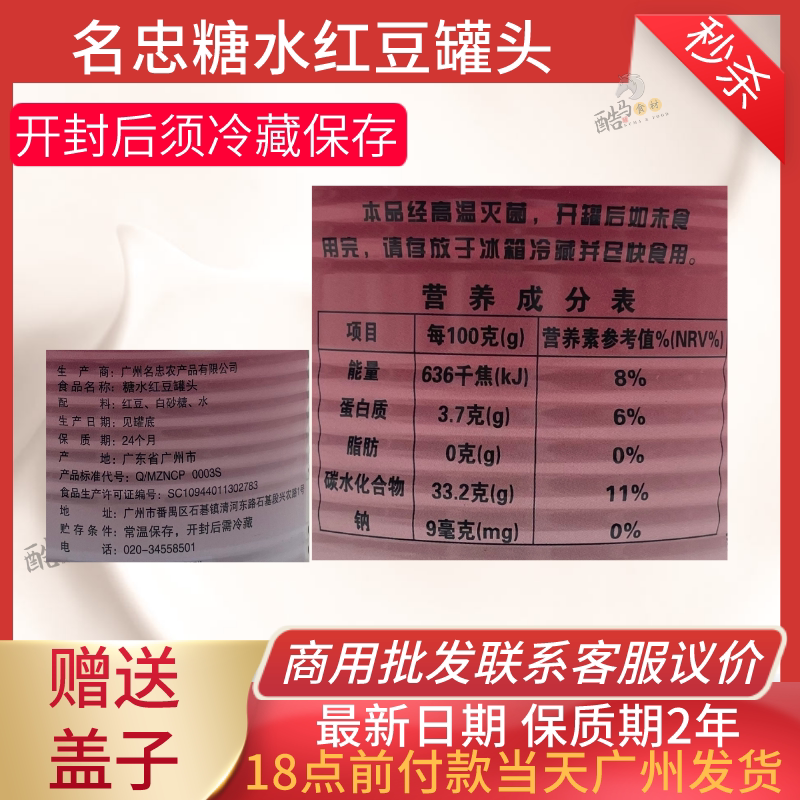 Mingzhong canned red beans 900g*12 cans whole box ready-to-eat sugar water canned red beans milk tea shaved ice dessert special