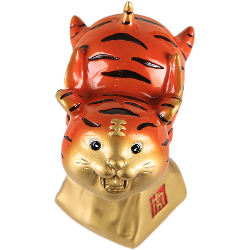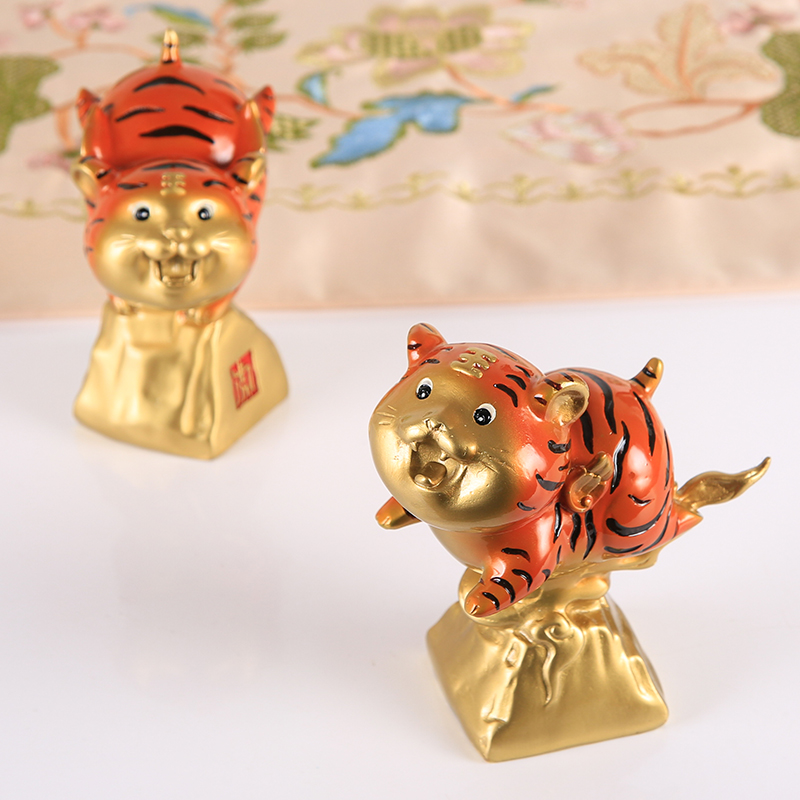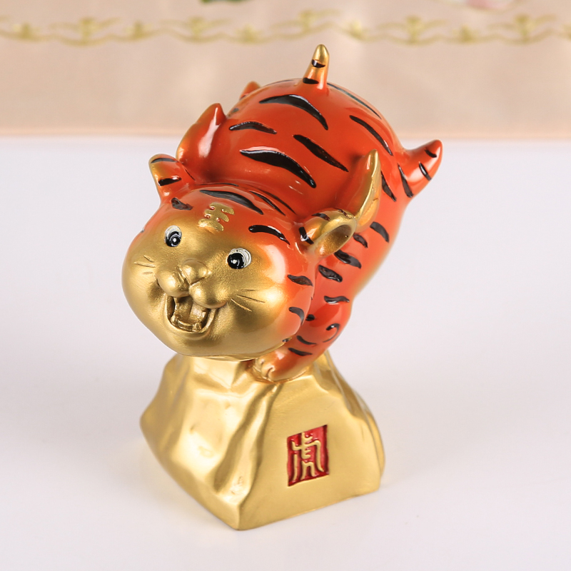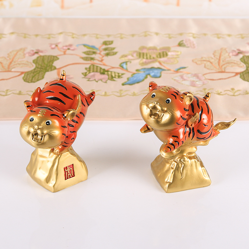 Zodiac Tiger Ornament Velvet Brass Craft Gift Living Room Office Table Decoration Opening Housewarming Gift