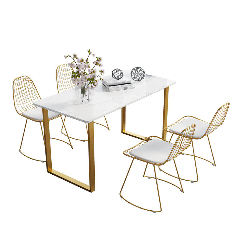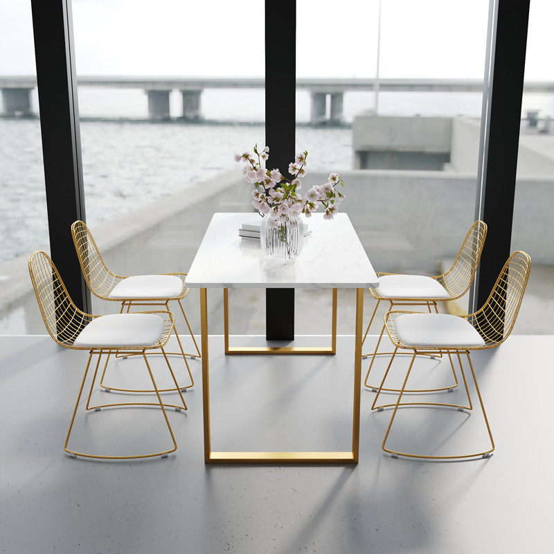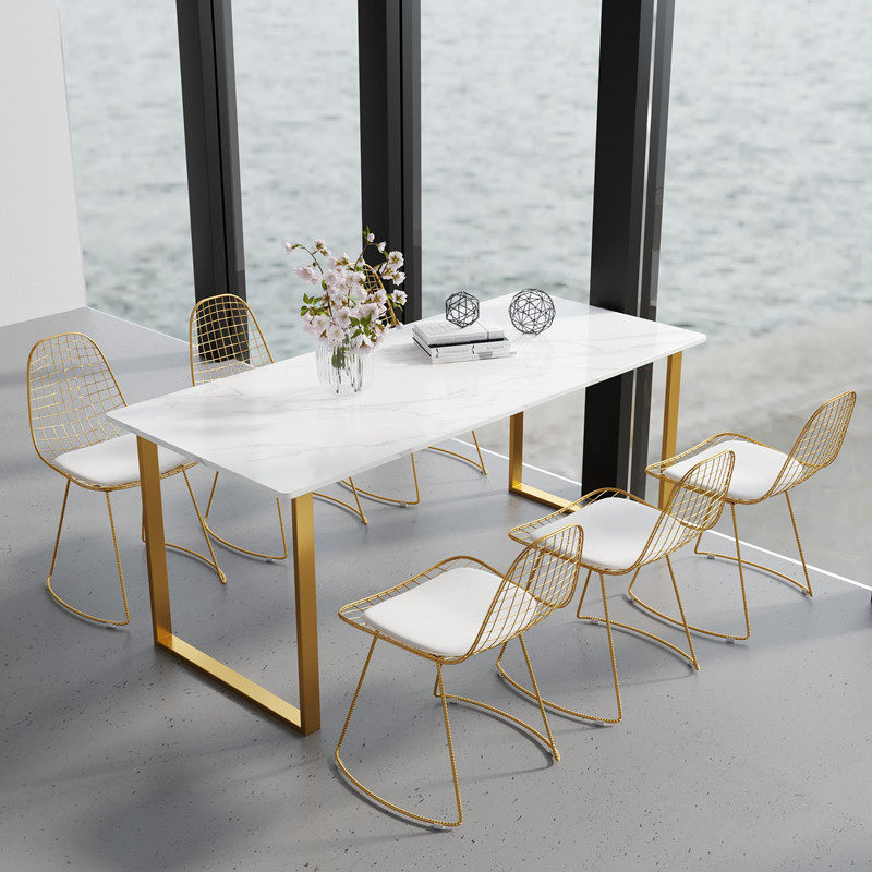 Nordic ins marble dining table rectangular dining table and chairs combined modern minima small family dining table Home-Taobao