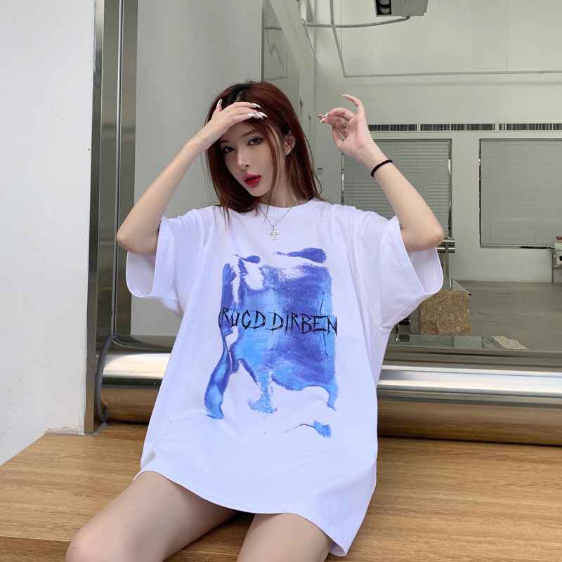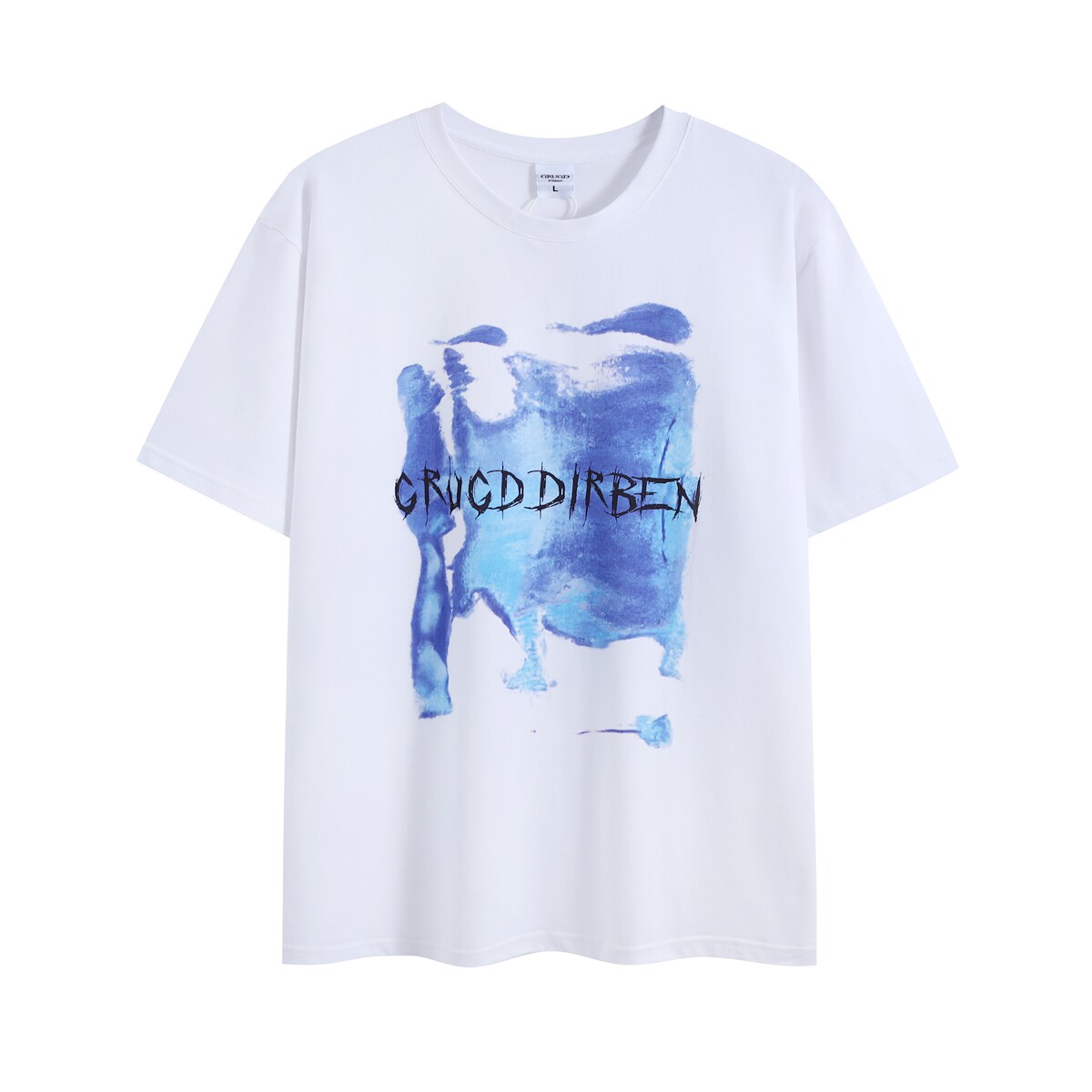 GRUGD DIRBEN white and blue round neck graffiti T-shirt hip-hop street loose ins student casual short-sleeved top tide
