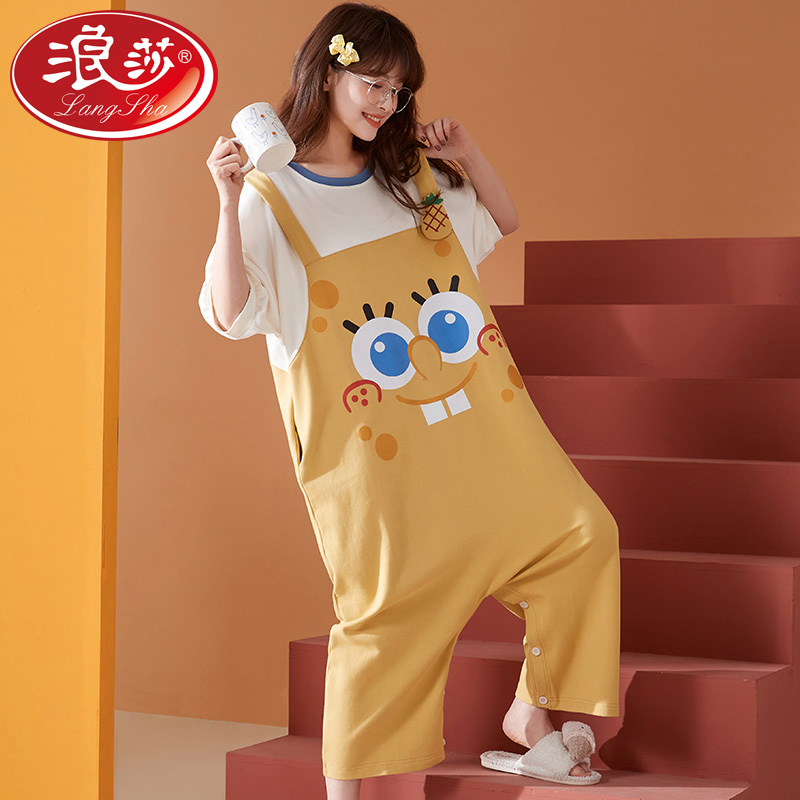 Even Body Sleeping Dressing Woman Summer Pure Cotton Short Sleeve Cartoon Cute Sleeping Skirt Woman Summer Thin home Residence Dress 2022 New
