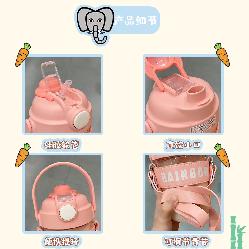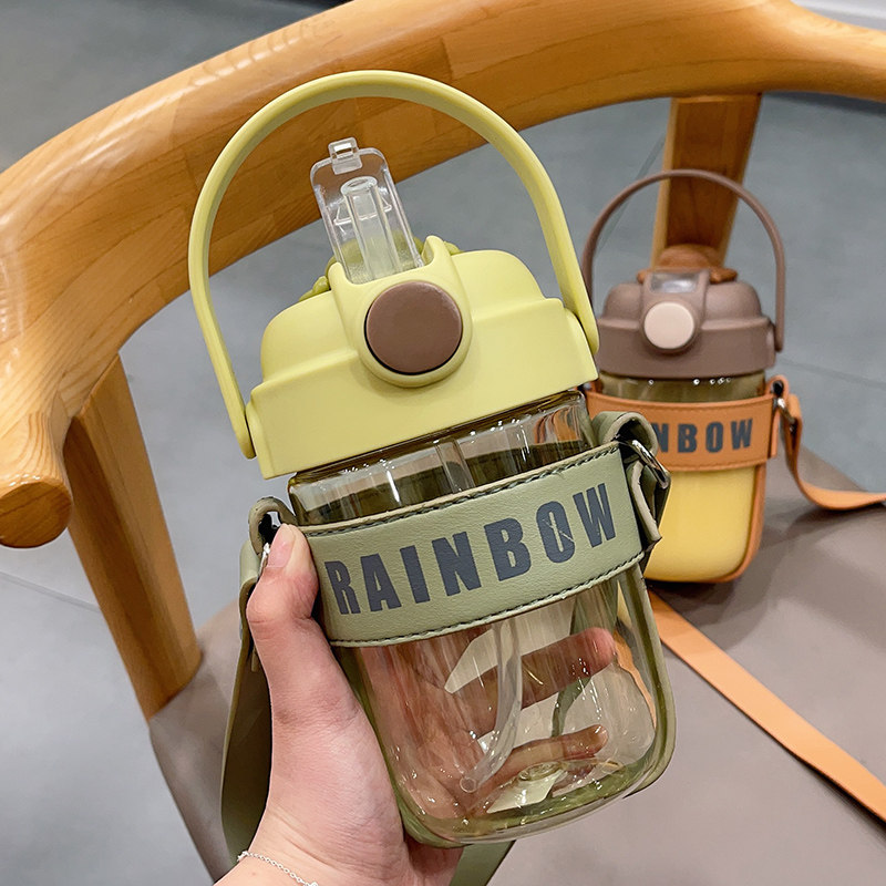 Net Red Straw Water Glass Creative Double Drink Cup High Face Value Large Capacity Plastic Cup Summer Skew Cross Portable Kettle Brief