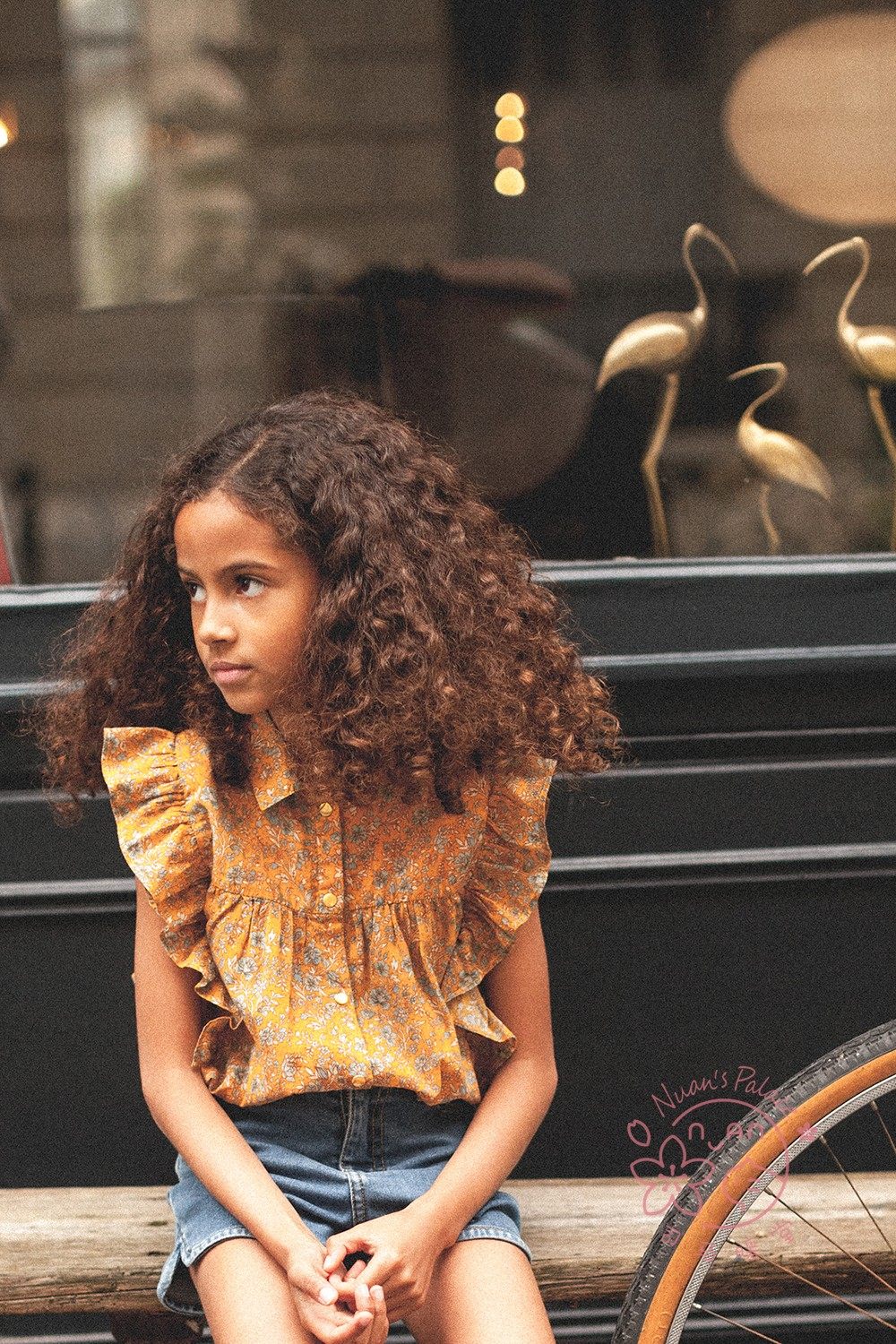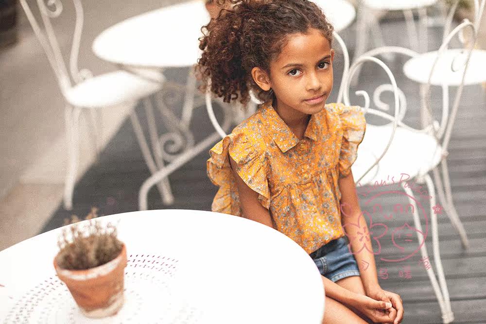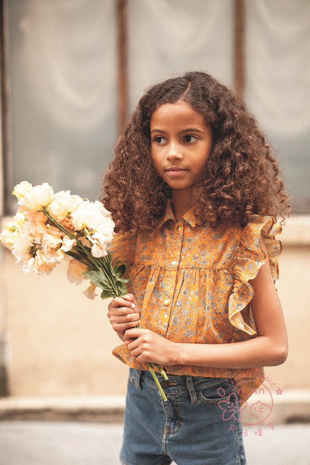 Division Horse warmers Louis Louise22SS French style girls Broken Flowers Sleeves Doll Shirts Denim Shorts