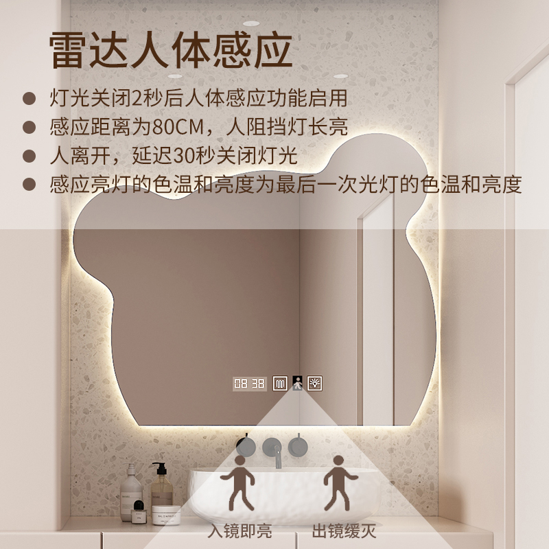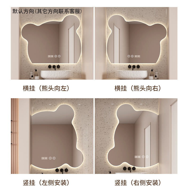 Customize the small bear mirror width 75 height 60 (single touch triple color light) width 85 height 70 (single touch triple color light) width 95 height 80 (single touch triple color light) width 105 height 90 height 90 (single touch three color)