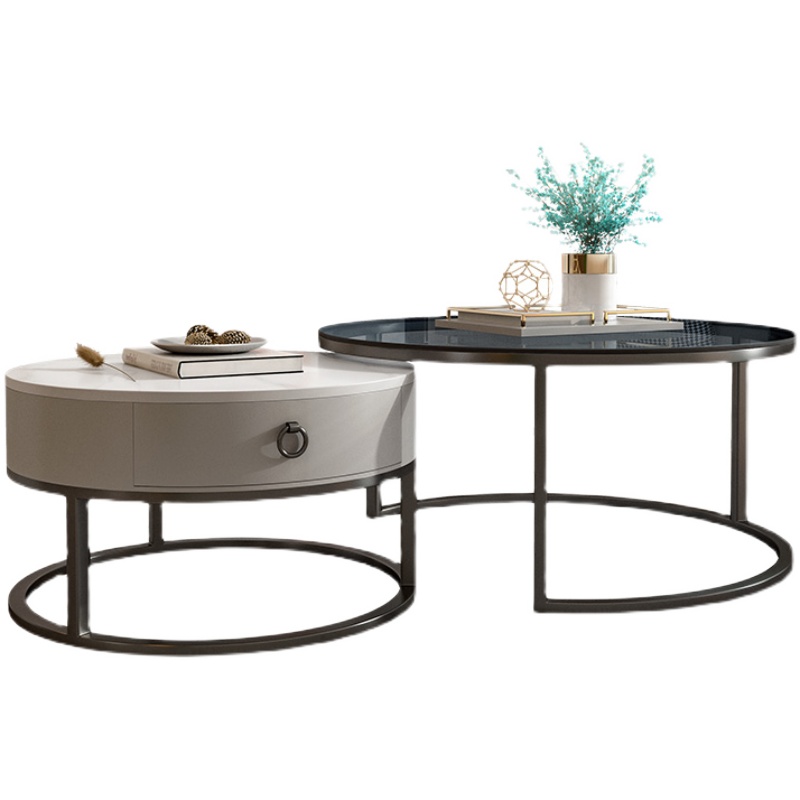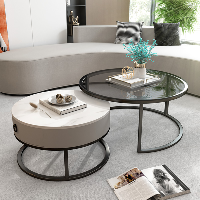 Italian-style round glass coffee table living room household slate simple small apartment net red light luxury modern movable tea table