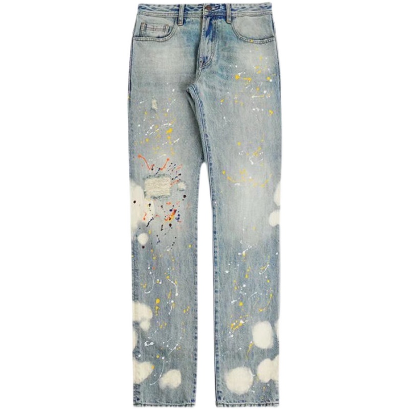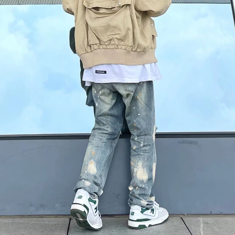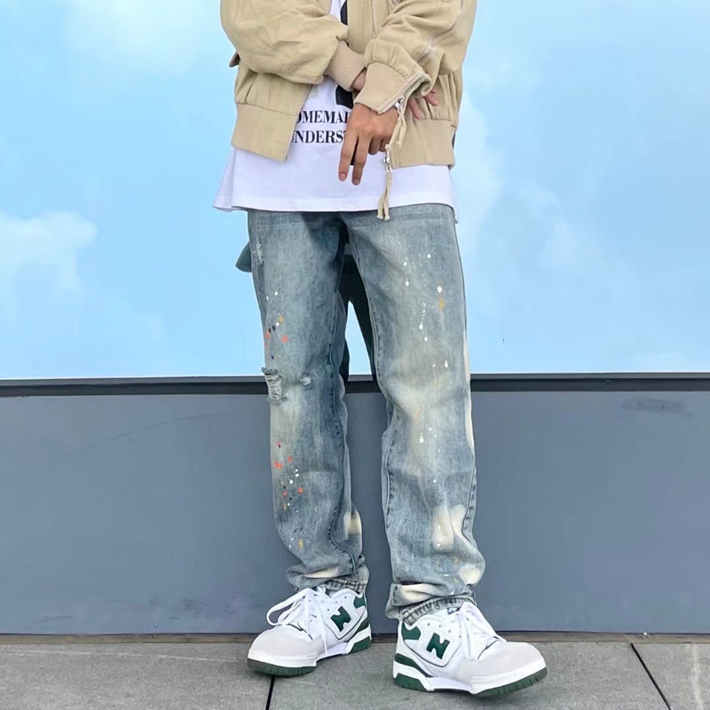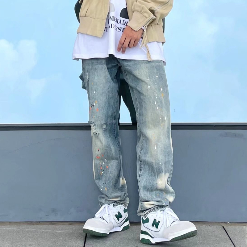 Personality Hip Hop Jeans Tidal man Chains High Street Straight tube Spring autumn American vibe Broken Hole Casual Long Pants