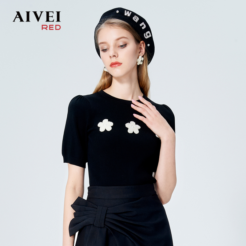 AIVEI congratulates Ivy 2022 summer new vintage ins style pearl flower crewneck wool knit shirt P0360037