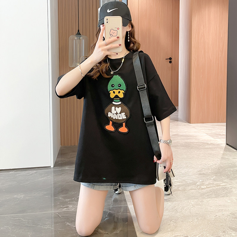 Pregnancy Woman Dress Summer Clothing Blouse Net Red Suit Fashion style 2022 New summer medium long version Cartoon short sleeve T-shirt