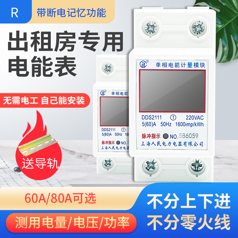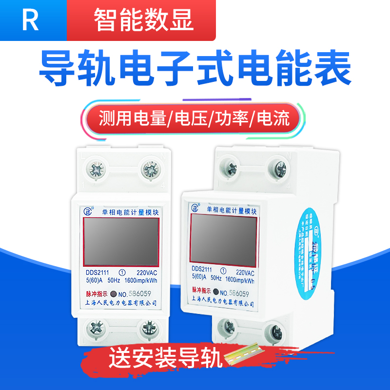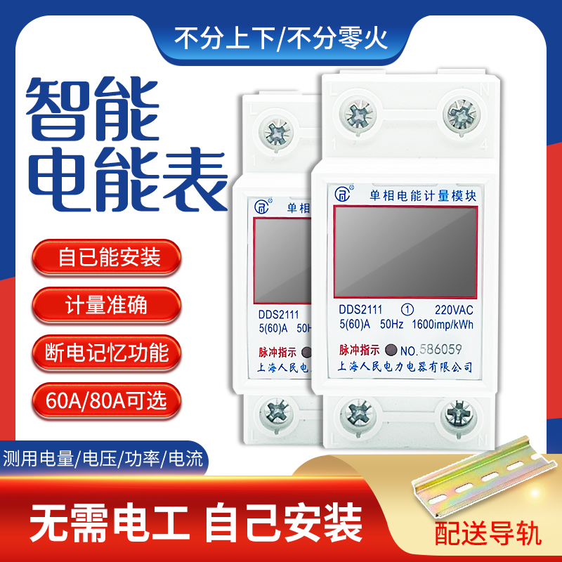 Shanghai People's meter Home Single-phase 220V smart small digital metering electric meter rail meter electric energy meter