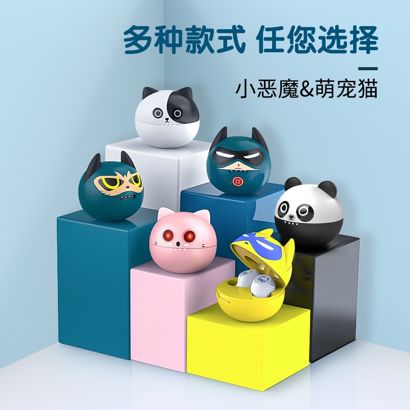 True wireless bluetooth headset 2021 new tws high-quality high-end noise-cancelling female and male in-ear sports game mini cute cartoon little devil no delay waterproof super long battery life