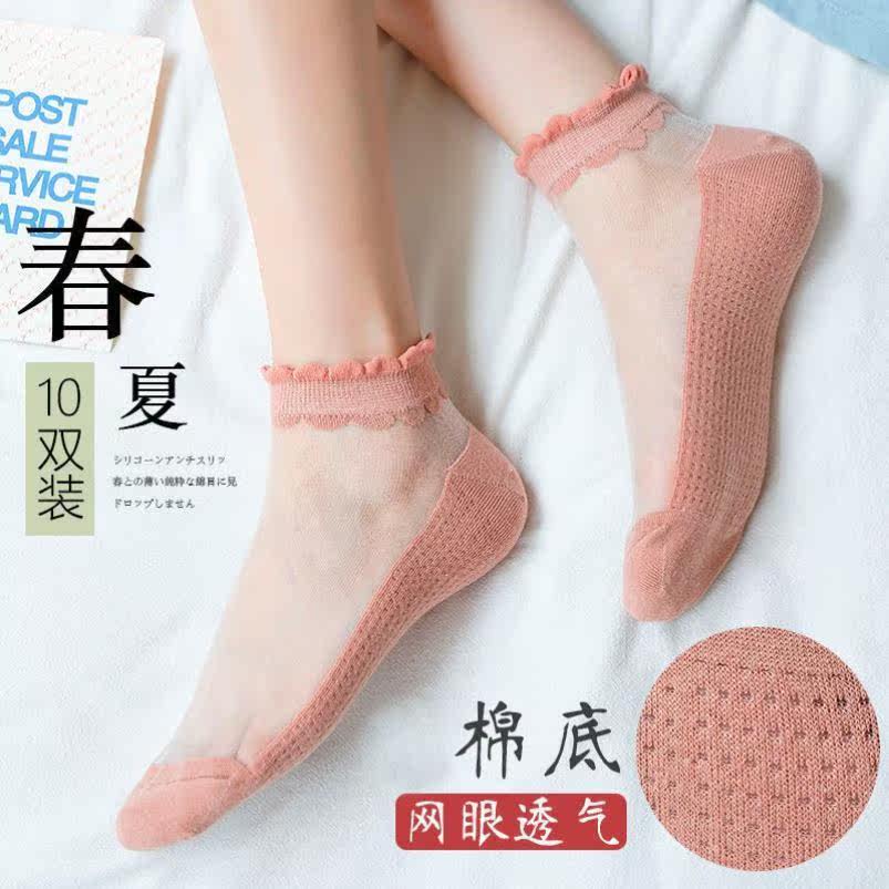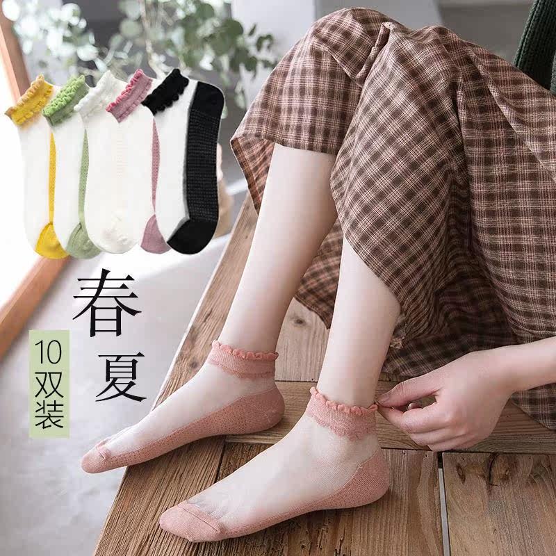 Summer thin crystal ice stockings women's lace ins socks socks Japanese boat socks deodorant cotton bottom glass stockings