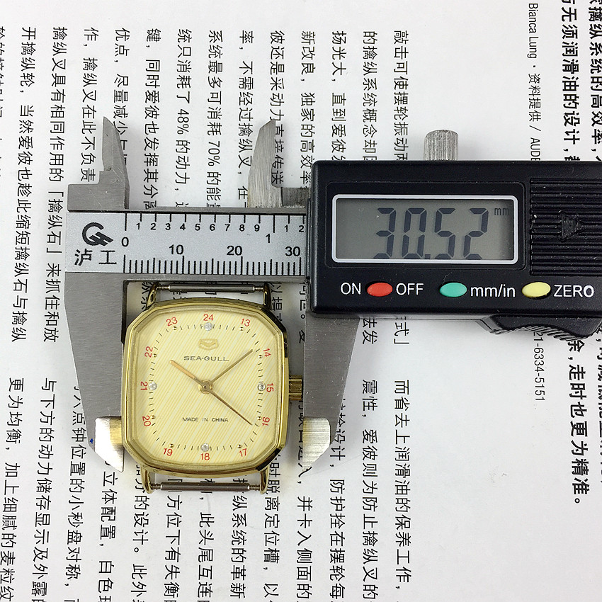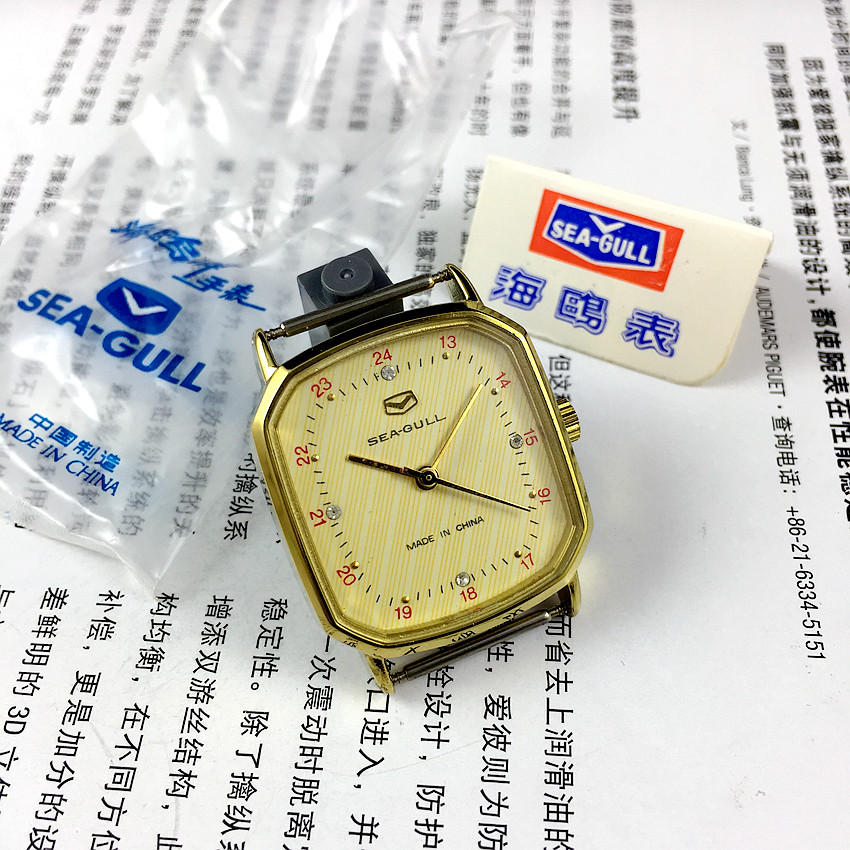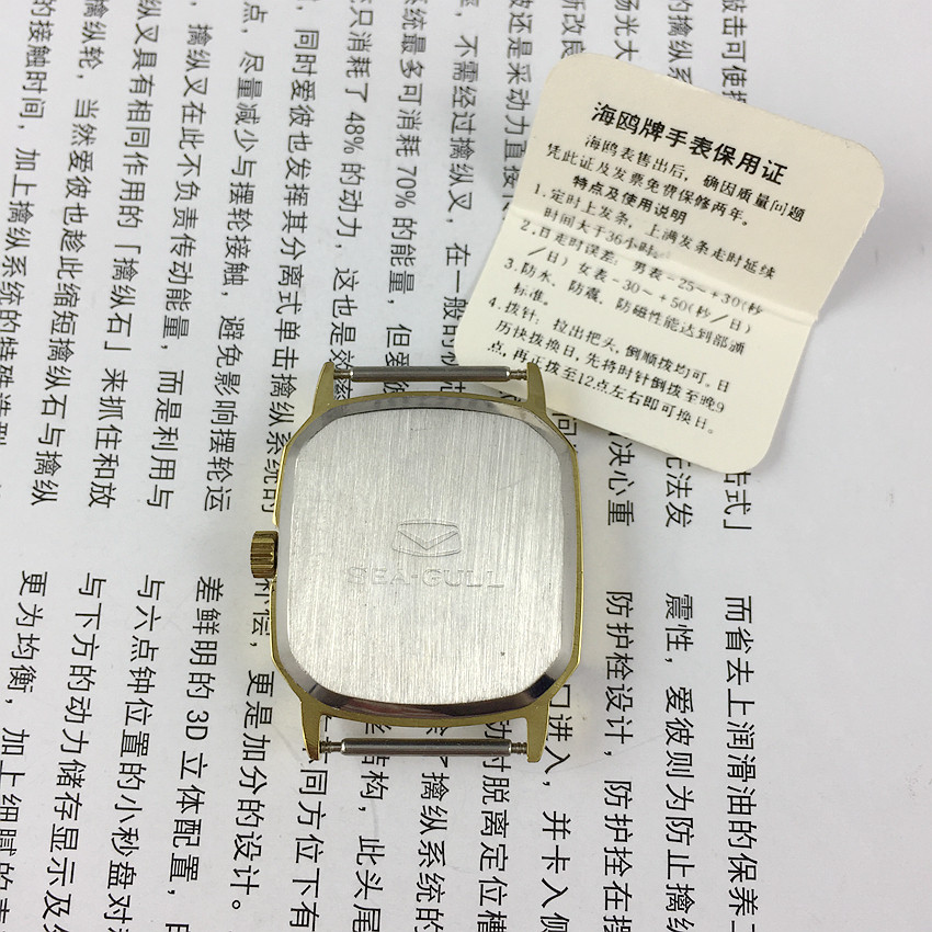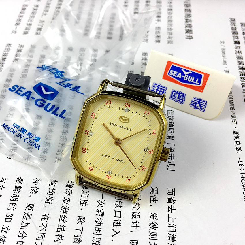 Original inventory Tianjin Watch Factory Seagull brand square yellow shell beige surface manual mechanical watch diameter 28 mm