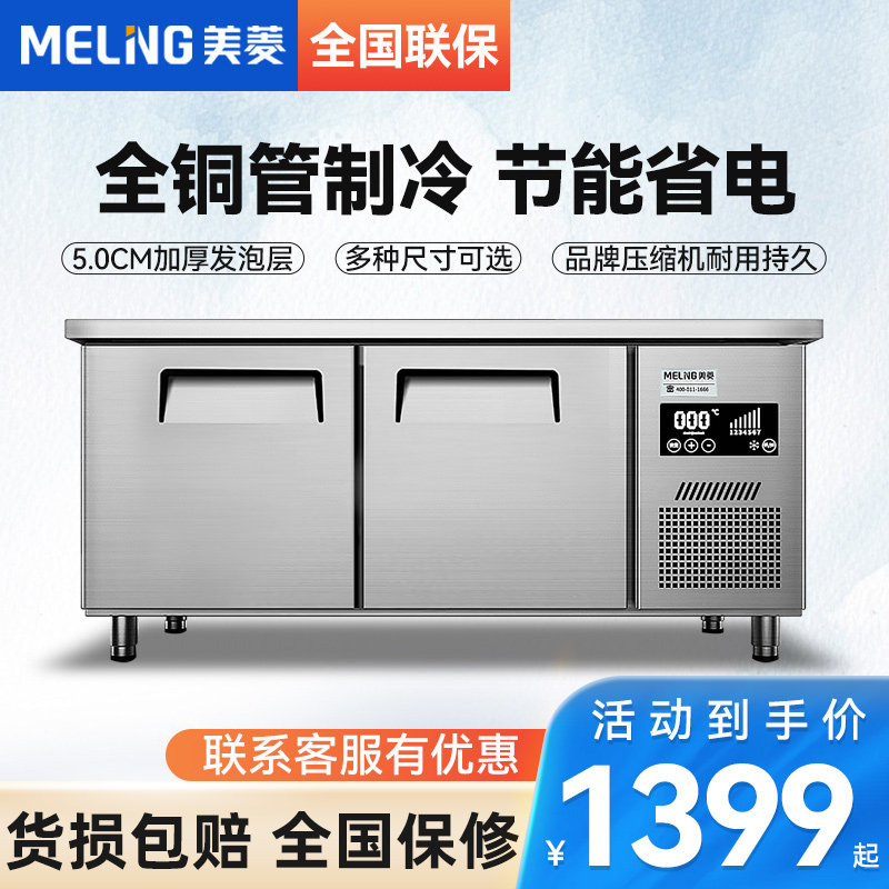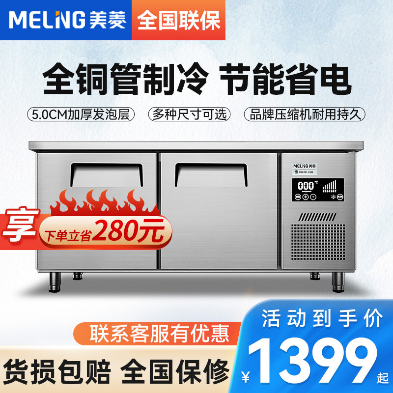 Meiling refrigerated workbench commercial freezer stainless steel refrigerator horizontal freezer operation platform flat freezer workbench