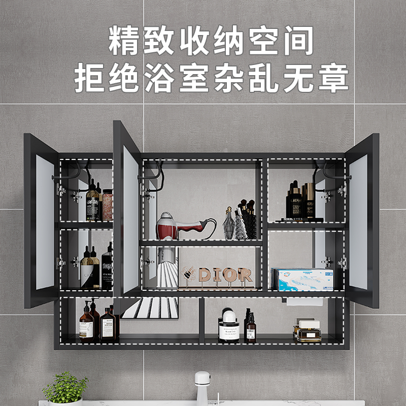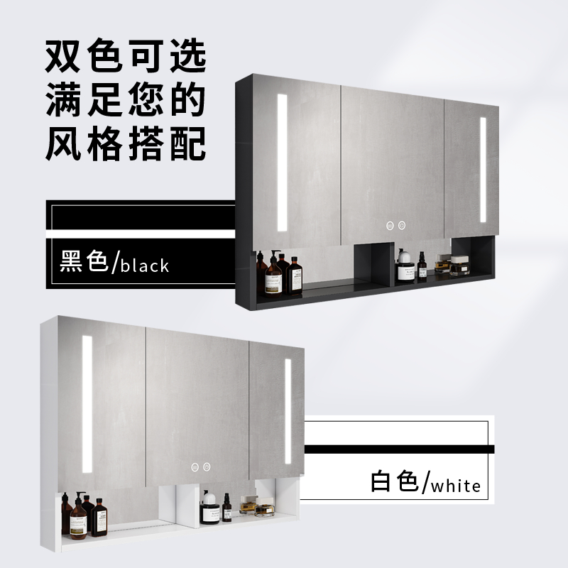 Space aluminum smart bathroom mirror cabinet toilet defogging with light storage storage mirror hanging wall rack mirror box