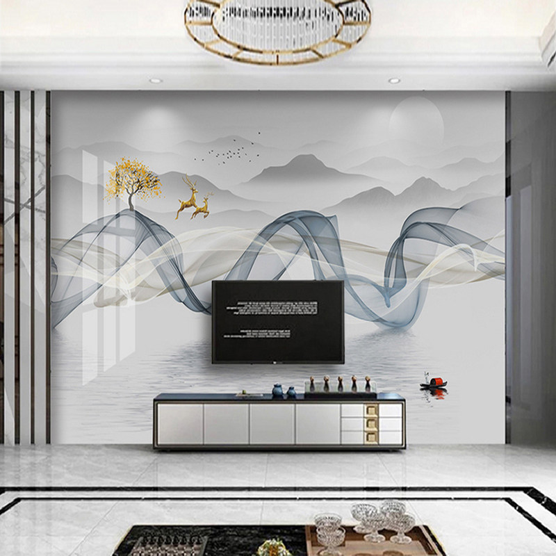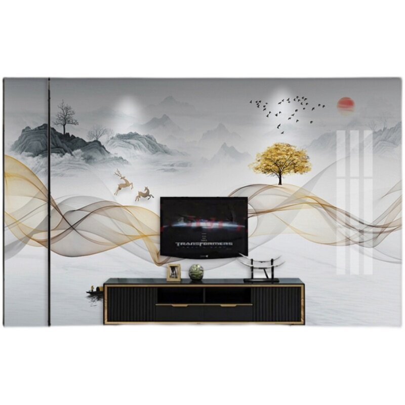 New Chinese integrated wall panel TV background wall modern living room Bedroom Bedroom wood-wood fiber decoration film and TV wall protection wall panel