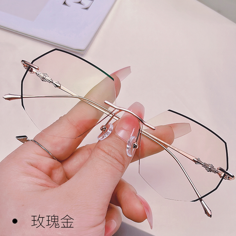 Xiaohongshu net red frameless black edge glasses myopia men with anti-blue light anti-fog color-changing polygonal large frame mirror