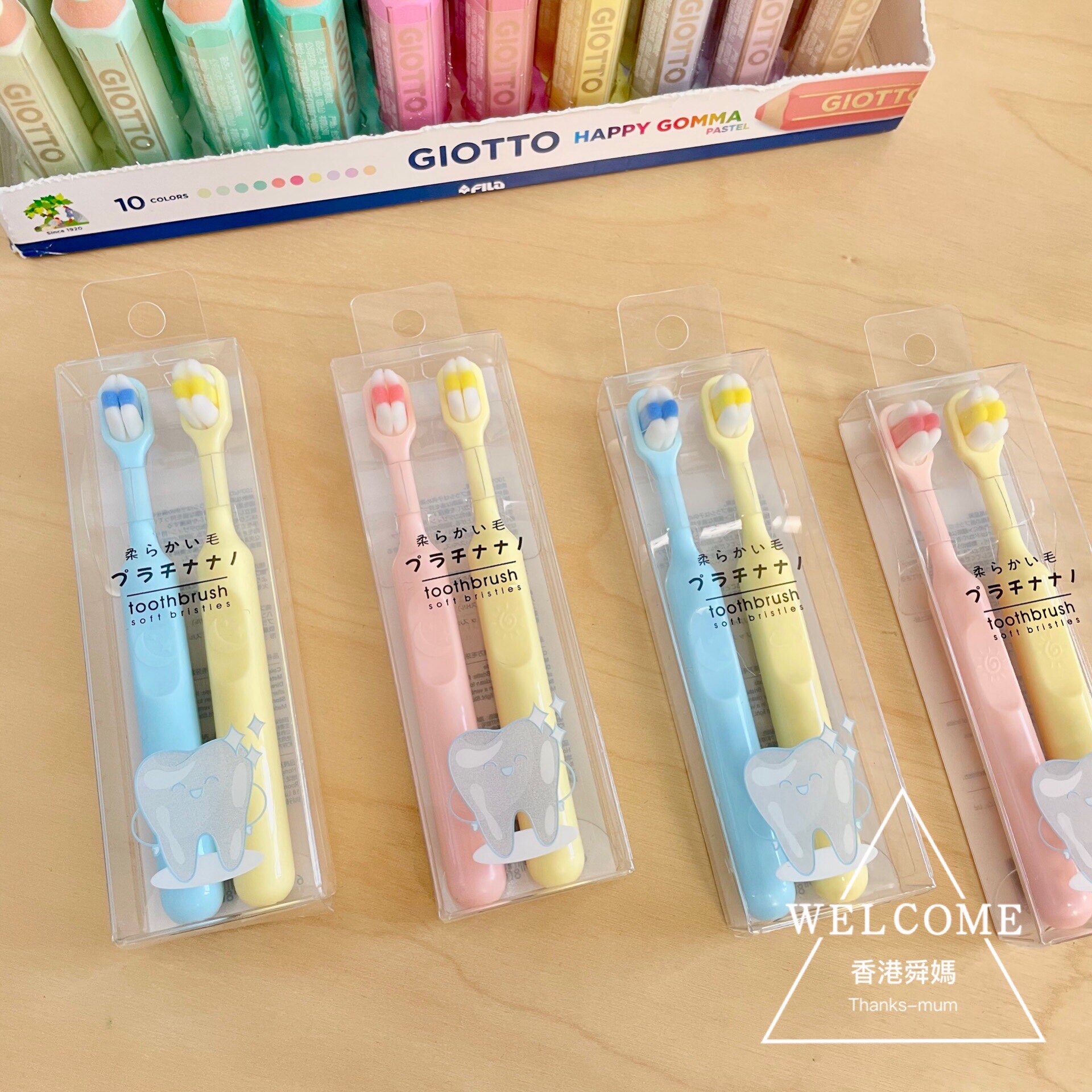 Japan Fresh Macaron Hydrophobic ten thousand Mao Children's toothbrush 2-9 years old soft and clean and anti-mothproof Hong Kong Shunma