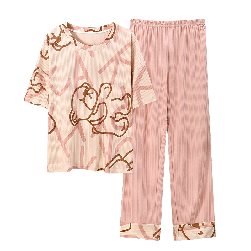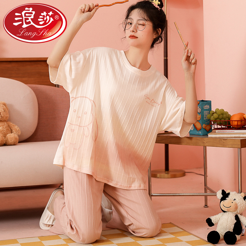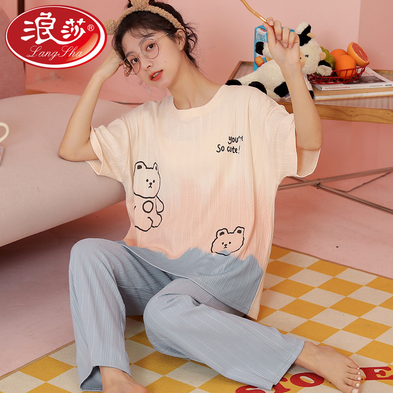 Net Red Wind Pyjamas Women Summer Pure Cotton Short Sleeves Long Pants Cute Spring Autumn Summer Thinness Home Clothes 2022 New