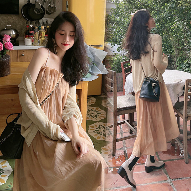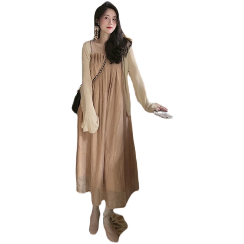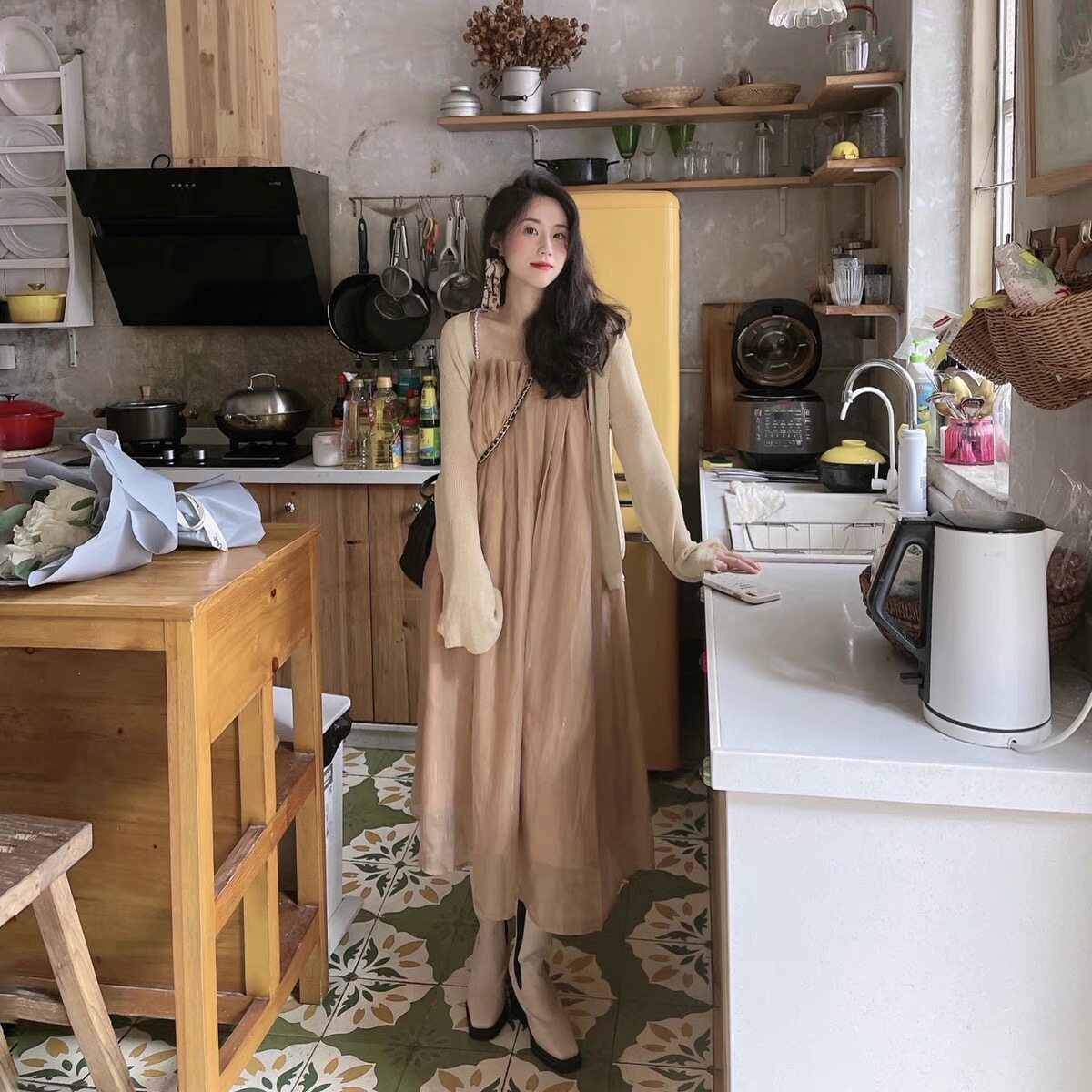 Milk tea color hanging band Skirt Milk Tea Color Anti-Clothing Milk Tea Color hanging band Skirt Milky Tea Color anti-dress