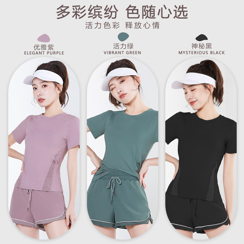 (Two-piece set) Black (two-piece set) Green (two-piece set) Purple (two-piece set) Purple short sleeves + black shorts Mesh short sleeves Purple (two-piece set) Green short sleeves + black shorts Grid short sleeves Black Grid short sleeves green
