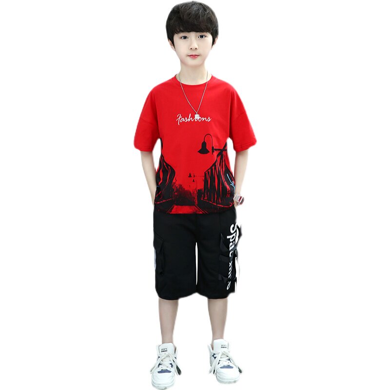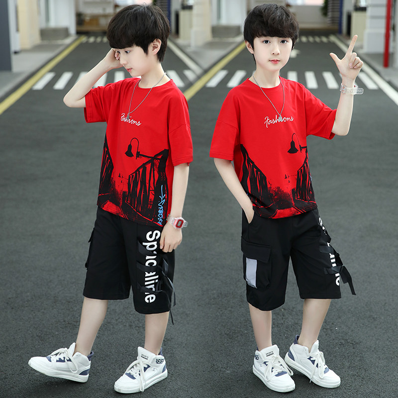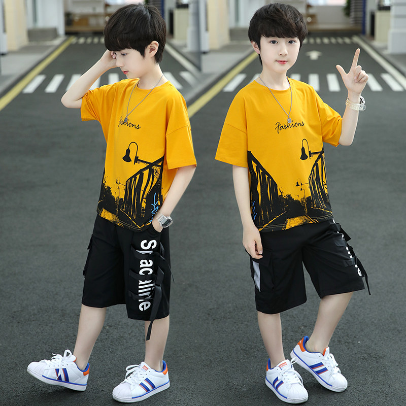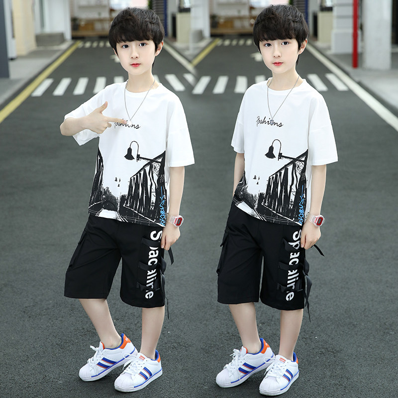 Boys' summer suit is handsome and fashionable 2022 new summer children's summer suit two - piece sets
