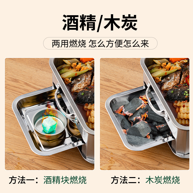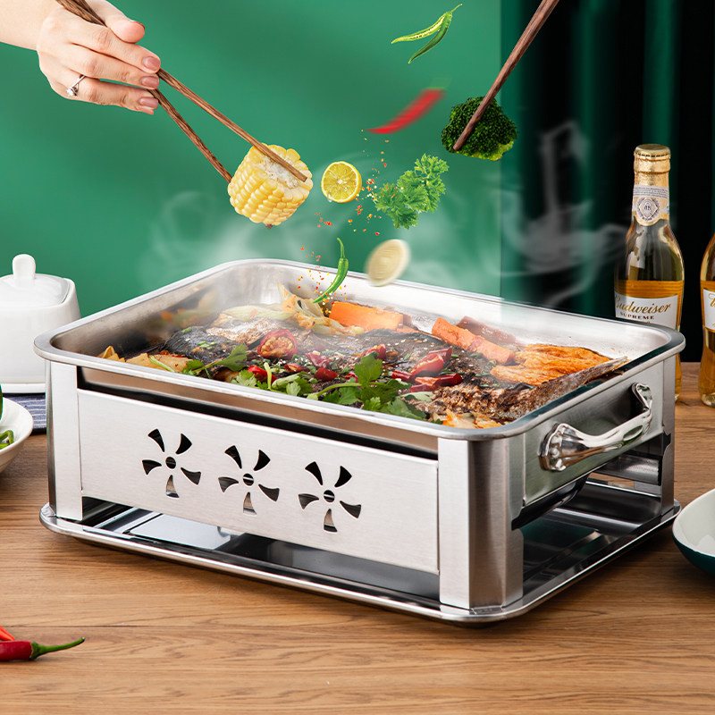 Stainless Steel Grilled Fish Pan Home Grilled Fish Oven Commercial Grilled Fish Pan Thickened Ventilated Grilled Fish Tray Alcoholic Charcoal Restaurant-Taobao