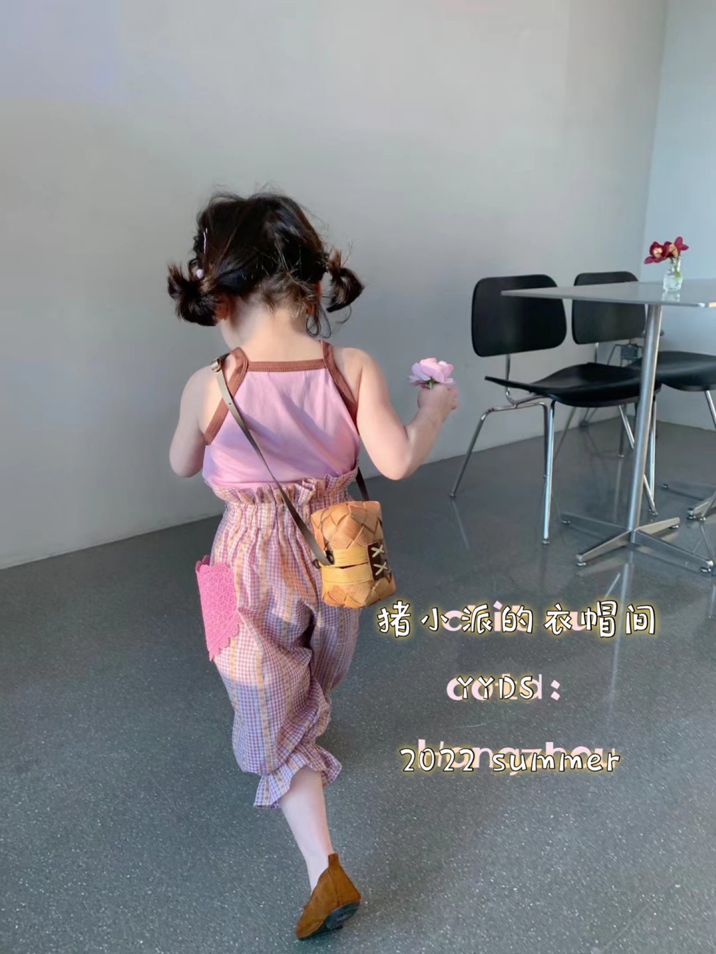 Pig Small Pie 2022 Summer Girl with small Bear Bear Harness Vest High Waist Loving Flowers Brunty Pants Mosquito mosquito South Korea cover