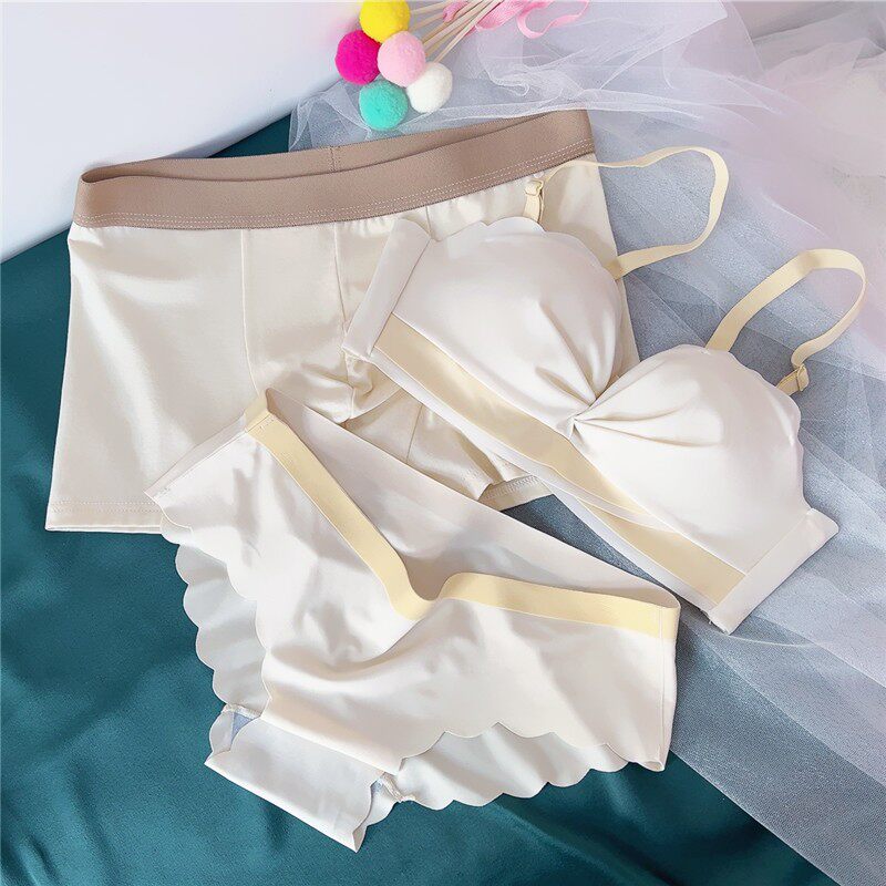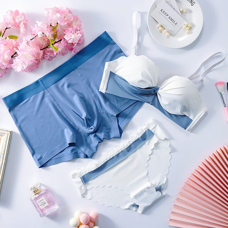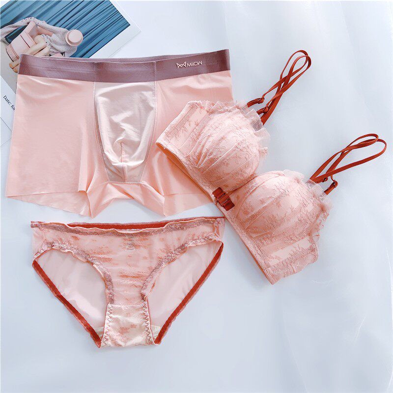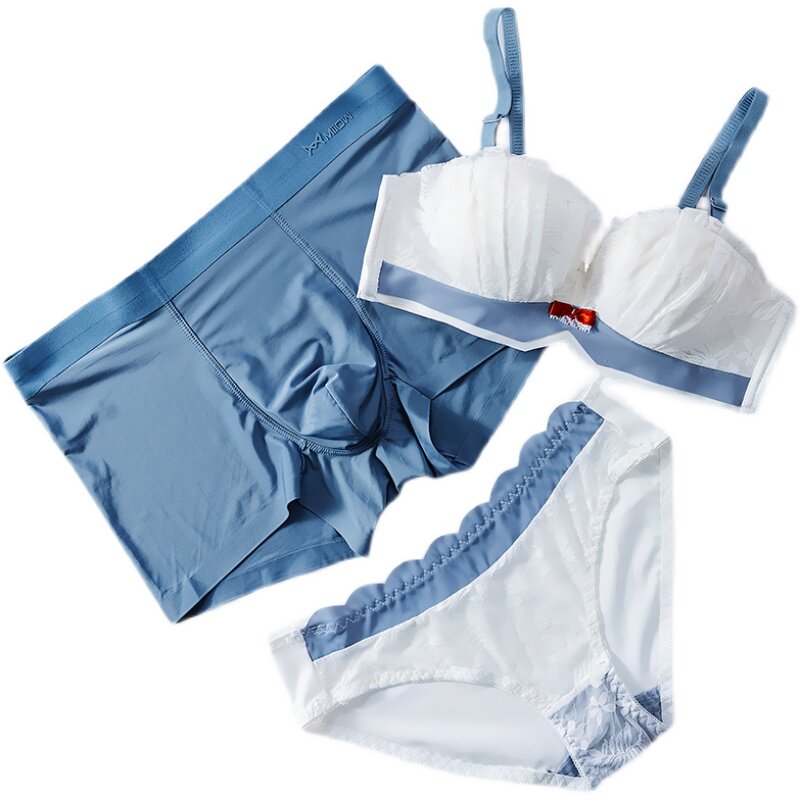 All beauty no steel ring couple underwear three-piece set lace ice silk couple models pure cotton file couple underwear one man