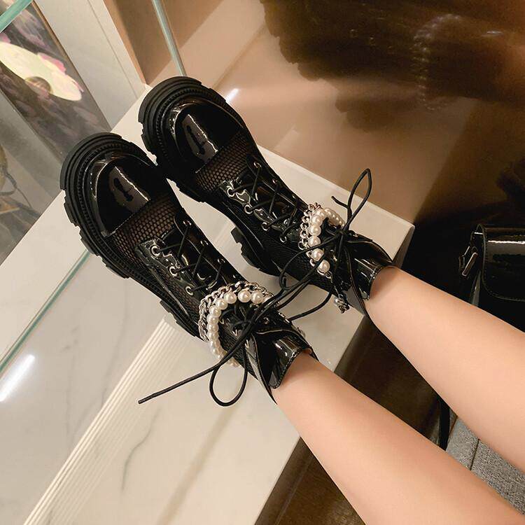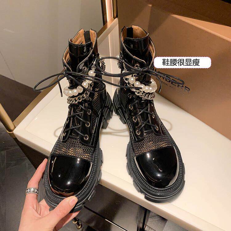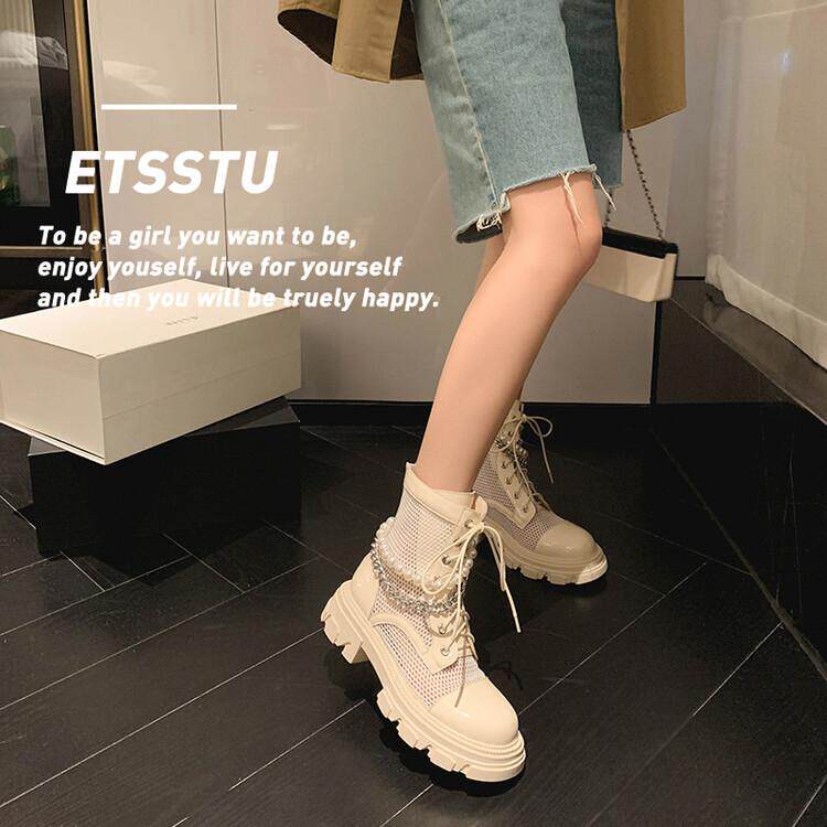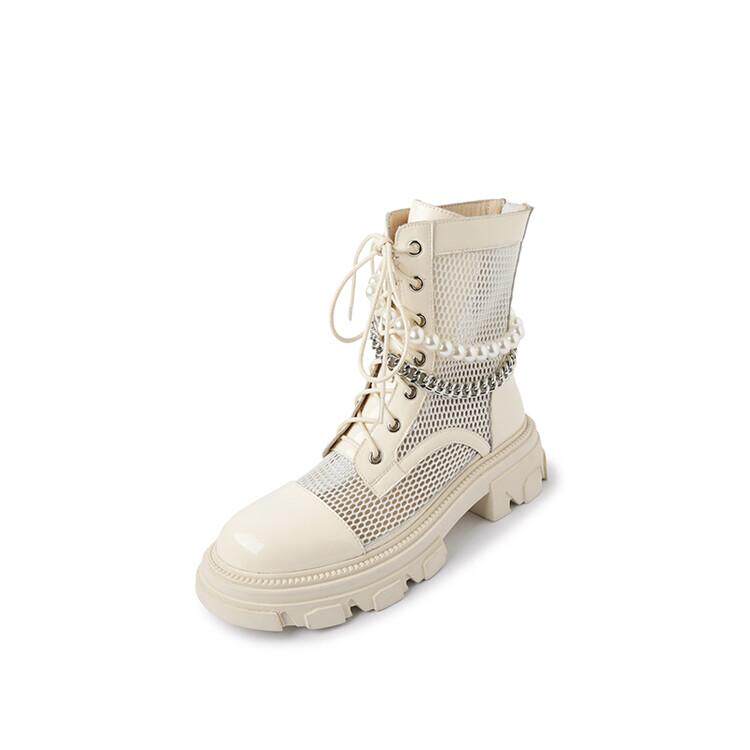 Pearl chain mesh shoes breathable mesh Martin boots summer breathable leather leather coarse and net red net yarn