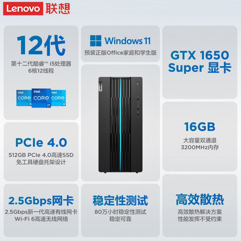 Lenovo GeekPro Intel cool-wise i5 two-piece desktop computer,i5-12400F