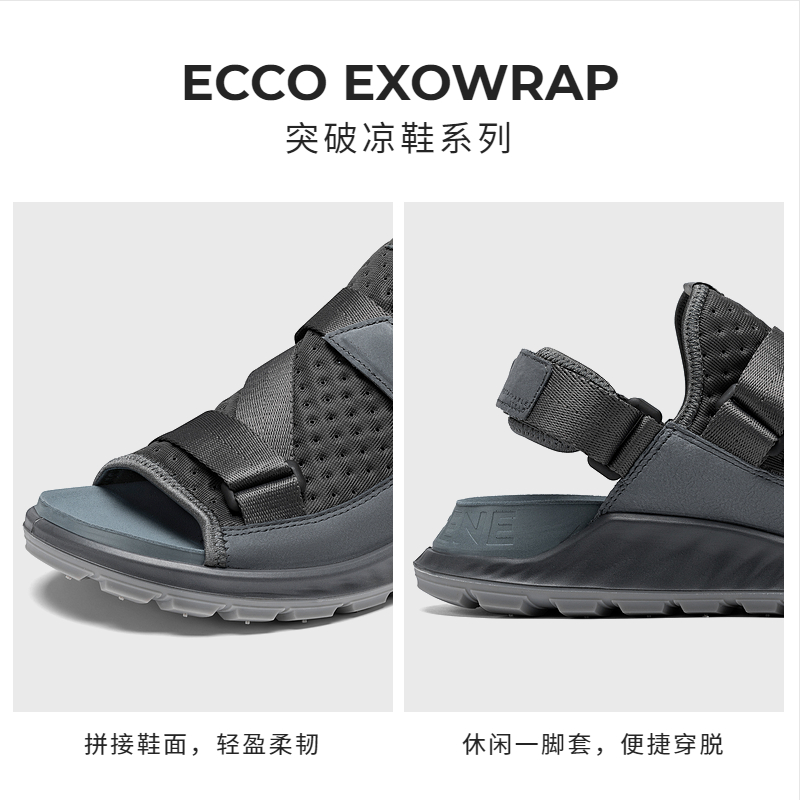 ECCO Love Step Beach Shoe Men's Summer Light Breathable Splicing Upper One Foot Sleeve Sandal Sandal Break 811834