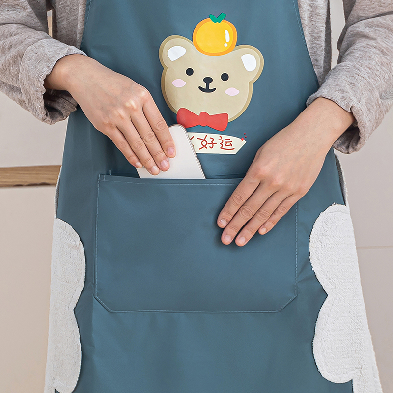 Apron home kitchen waterproof and oil-proof hand wipes work clothes men's Japanese cute Korean women's fashion cooking apron